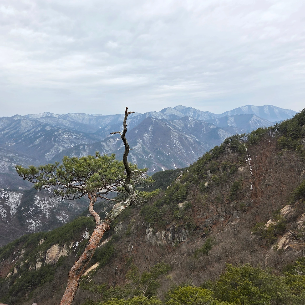중간중간에 있는 고사목도 같이 보면서 지나 내려간다. 내려가면서 이제 잔설이 없다. 다음주가 되면 이제는 완연한 초봄의 등산로가 될 것이다. 일기예보 비가 6시 이후에 온다고 하는데 벌써 온다. 그렇게 많은 비가 오지는 않지만, 이제는 눈이 내리지 않고 비가 온다. 겨울이 다 갔다고 H는 이야기한다.