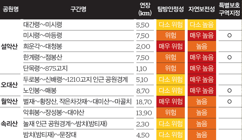 그리고 백두대간길은 출입금지라고 안내되어 있다. 하지만, 오늘 그 길을 걸어야 한다. 국립공원공단이나 산림청에서는 백두대간길중 어느 곳은 탐방금지라고 안내하고 있는데 등산객들은 계속 걷고 있다. 이것을 어떻게 할 것인지 고민을 하여야 한다고 본다. 용아장성 같이 위험한 구간도 아닌데, 생태보호를 위하여 입산통제를 한다고 하였다. 하지만, 등산로 중 백두대간길만 열어두었으면 하는 것이 아쉬움의 연속이라고 할 것이다. 그렇데 통제를 한다고 하여서 백두대간길을 걷는 사람들을 단속도 못할 것이면서, 그렇게 열심히 안내를 하고 있다.