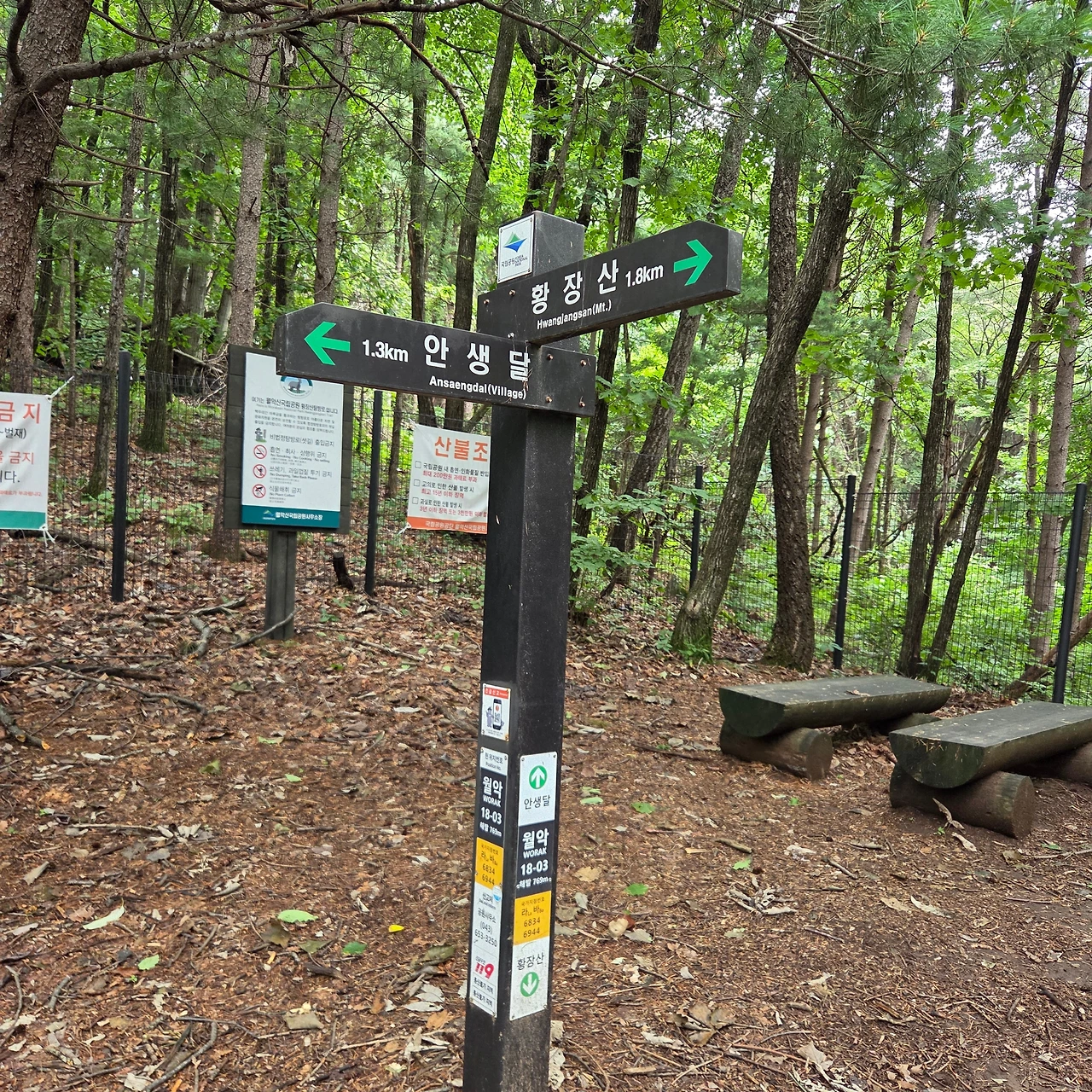 황장산 정상에 도착하였다. 아무것도 보이지 않다. 그 정상에서 인증을 남기고 이제 하산을 하면서 벌재로 갈 것이다. 생달로 내려가는 길로 가다가 벗어나는 것이다. 벗어날 수 없도록 울타리를 설치해 놓은 것이 아니었다. 길이 열려있고 그곳으로 가지 말라고 안내만 있다.