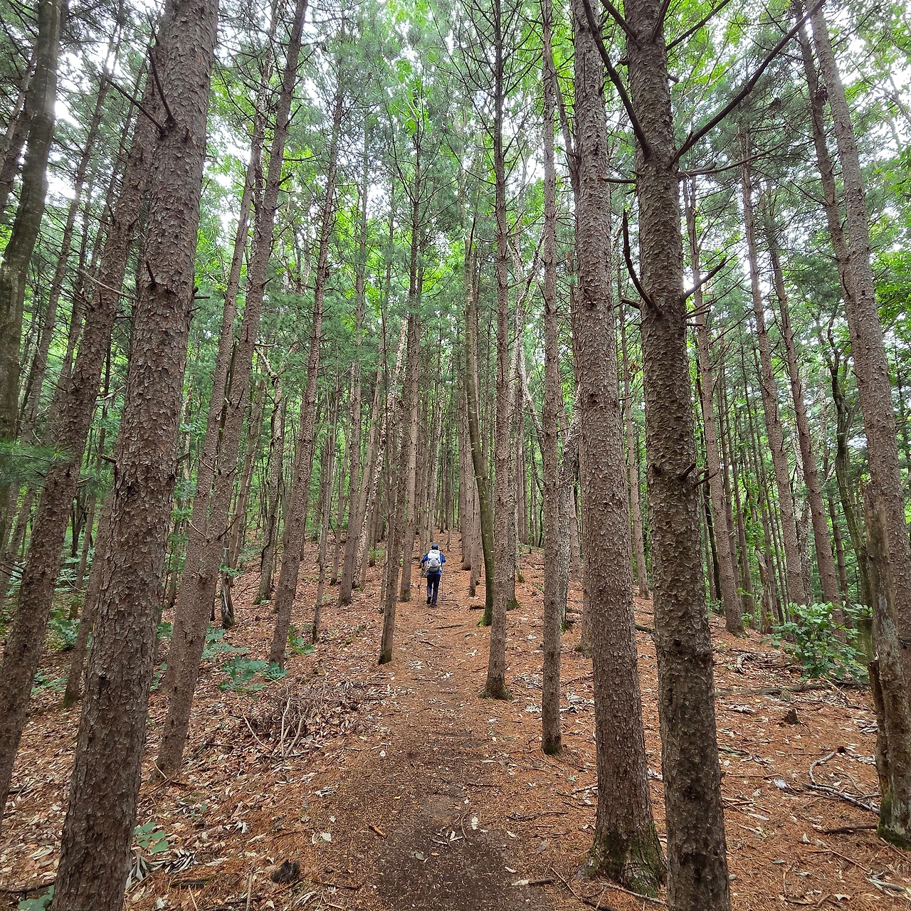 안생달에서 작은 차갓재로 올라가는 길에 이정표를 만났다. 갑자기 잘 포장되어 있는 길이 아닌 산길을 안내하고 있다. 사실 J와 B는 그렇게 좋아하지 않지만, H는 좋아한다. 그 길로 올라가는데 입구에 캠핑카를 갖다 놓은 것처럼 자연인이 살고 있는 것 같다. 좁은 등산로가 있고 표지기가 있어서 따라 올라가는데, 길이 점점 옅어지고 있다. 올라가다가 J와 B는 잘못 올라왔다고 하지만, 나와 H는 계곡을 따라 올라가기로 고집을 하면서 올라간다. 예전에 이곳에 화전민들이 살았던 흔적을 지나 올라가니 어느 곳에서는 등산로가 사라진다. 오르면서 푸른 풀발이 좋다. 그 풀발을 걷고 올라서서 능선에 도착하였고, 백두대간에 접어들었다. 1시간이 안되어 백두대간에 도착한 것이다. 이 길이 비 법정등산로라고 하는데 많은 사람들이 다닌 흔적이 있다. J와 B가 우리가 탈출한 곳을 갔다 오라고 하지만, 그렇게 할 수는 없었다. 산림청에서 통제하는 것이 아닌 국립공원공단에서 통제하는 것이다.
