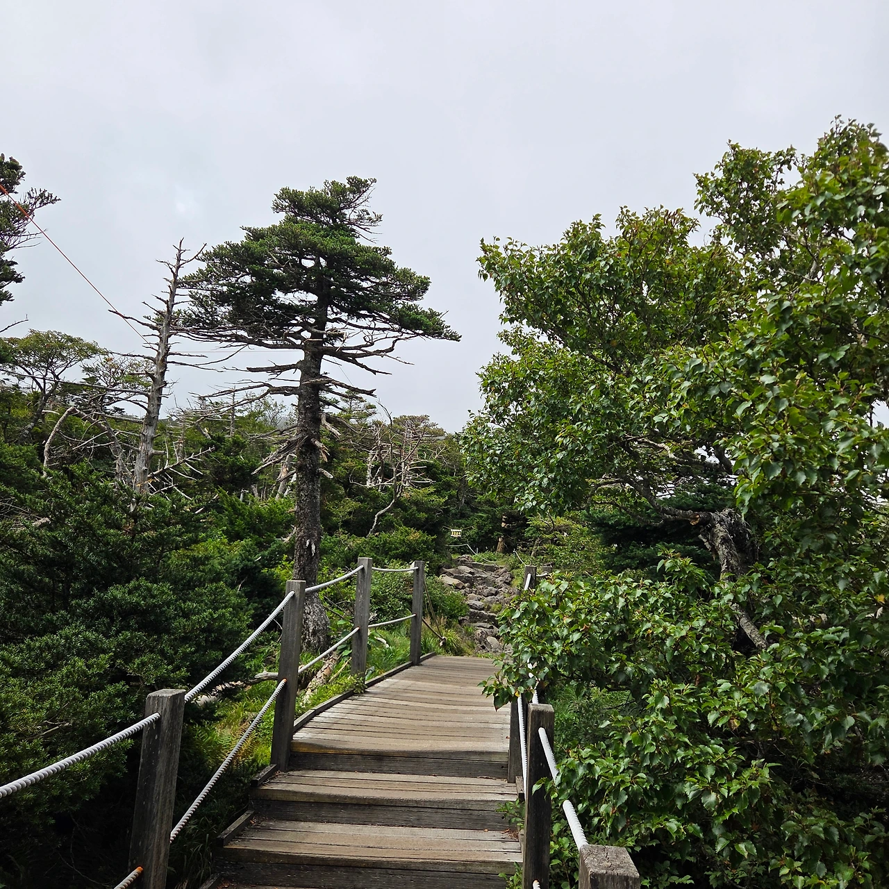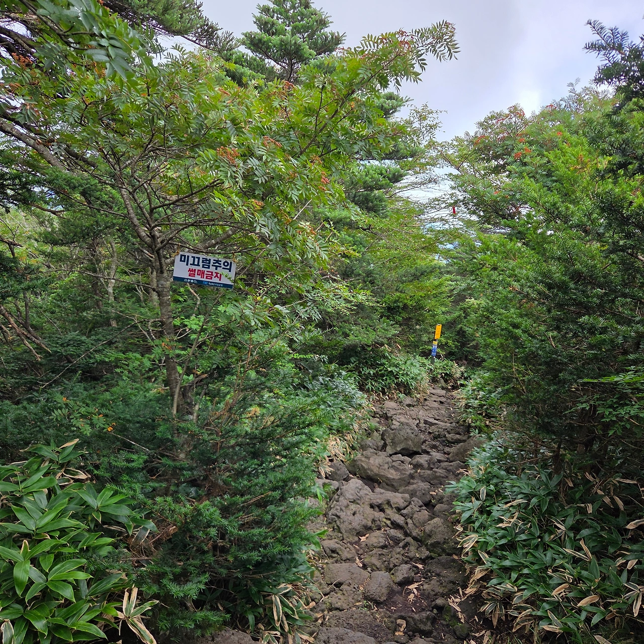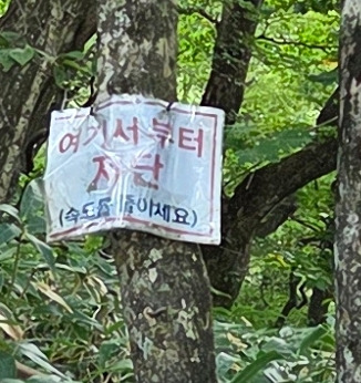 관음사 입구에서 QR 코드를 인식하고 게이트를 통과했는데, 바로 옆으로 그냥 지나갈 수 있는 길이 있었다. 중간에 확인하는 곳도 없어 예약 시스템이 허술하다는 인상을 받았다. 나중에 제주도 공식 안내 사이트를 확인해 보니, 입구가 아닌 삼각봉 대피소에서 예약을 확인한다고 되어 있었다. 입구에 그러한 안내 문구조차 없어 혼란스러웠다. 삼각소 대피소에서 정상으로 가는 길에 무엇인가 있는데 그냥 열려 있었다.