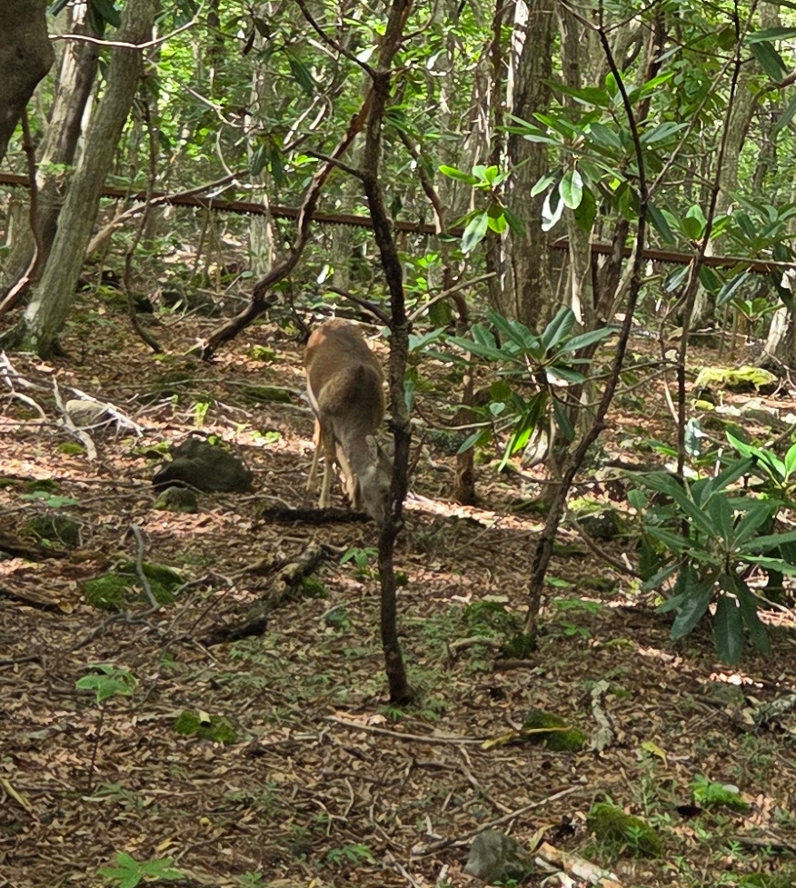 사람이 드문 하산길에서는 멧돼지와 사슴도 만났다. 안내판에 멧돼지를 만나면 신속히 피하라고 되어 있어 조용히 지나쳤다. 하지만 사슴에 대한 안내는 따로 없어서, 잠시 멈춰서 관찰하며 사진도 찍었다. 사슴은 사람이 가까이 있어도 도망가지 않았다. 사람이 자신을 해치지 않는다는 것을 아는 듯했다.