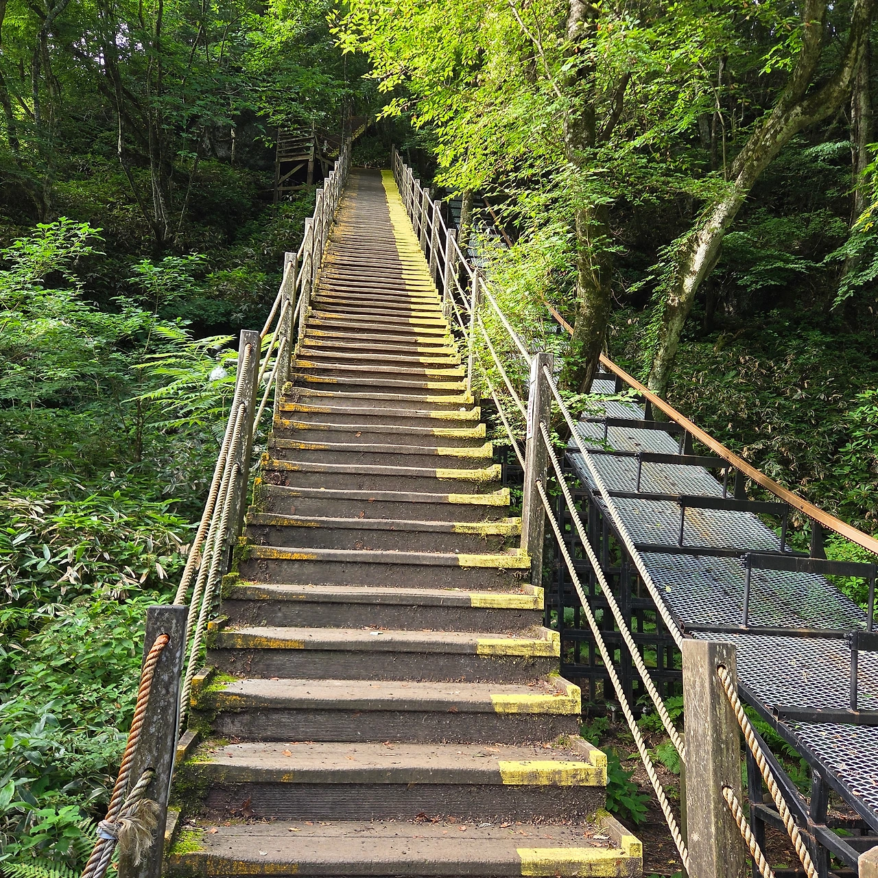 첫 번째 목교가 있는 휴식터에는 까마귀 조각상이 있었는데, 진짜 까마귀가 앉아 있는 것으로 착각할 만큼 정교했다. 이곳에서 헬리콥터로 조난자를 구조할 수 있다는 안내판도 보였습니다. 이제부터는 '개미등'이라 불리는 어려운 구간이 계속되었다. '이제부터 저속 기어를 넣으세요'라는 재치 있는 안내 문구가 보였다. 속도보다 안전이 중요하다는 뜻일 것이다. 평일이라 등산객이 많지 않아 주변 사람들의 도란도란 이야기하는 소리가 자연스레 들려왔다. 흔히 남자들끼리 등산하면 말이 없을 거라 생각하지만, 꼭 그렇지만은 않았다.