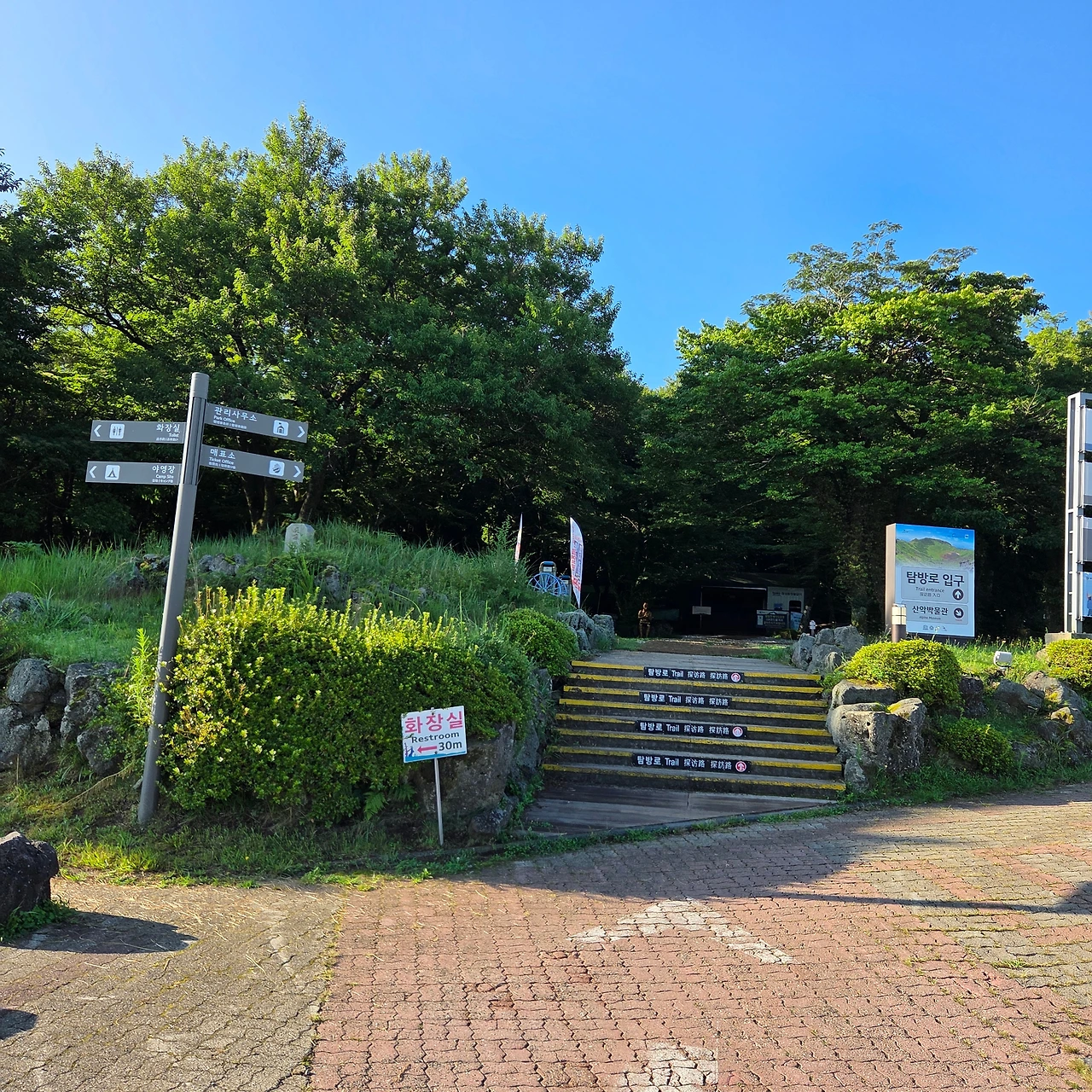 성판악 출입구는 QR 코드를 찍지 않으면 통과할 수 없도록 시스템이 잘 정비되어 있었다. 입구 휴게소에서는 다른 물건은 팔지 않고 삼다수만 500ml 한 병에 500원이라는 저렴한 가격으로 판매하고 있었다. 하지만 정상 인증서 출력 키오스크는 사용법이 무척 복잡했다. IT에 익숙한 나조차 이해하기 어려웠고, 주변의 젊은 친구들도 헤매는 것을 보니 안내 문구가 개선될 필요가 있어 보였다.