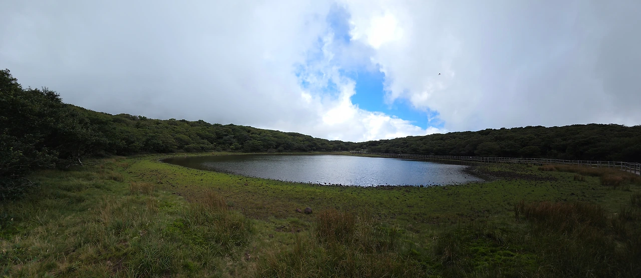 사라오름으로 가는 갈림길에 섰다. 시간도 넉넉하여 백록담이 있는 정상을 다른 각도에서 감상하기 위해 사라오름에 오르기로 했다. 왕복 600m의 짧은 거리이고 길 전체가 데크로 잘 정비되어 있어 어렵지 않았다. 계단을 올라 우리나라의 대표적인 산정호수 중 하나인 사라오름의 호수를 둘러보았다. 전망대에서 다시 정상을 바라보니, 구름이 그새 정상을 가리고 있었다.