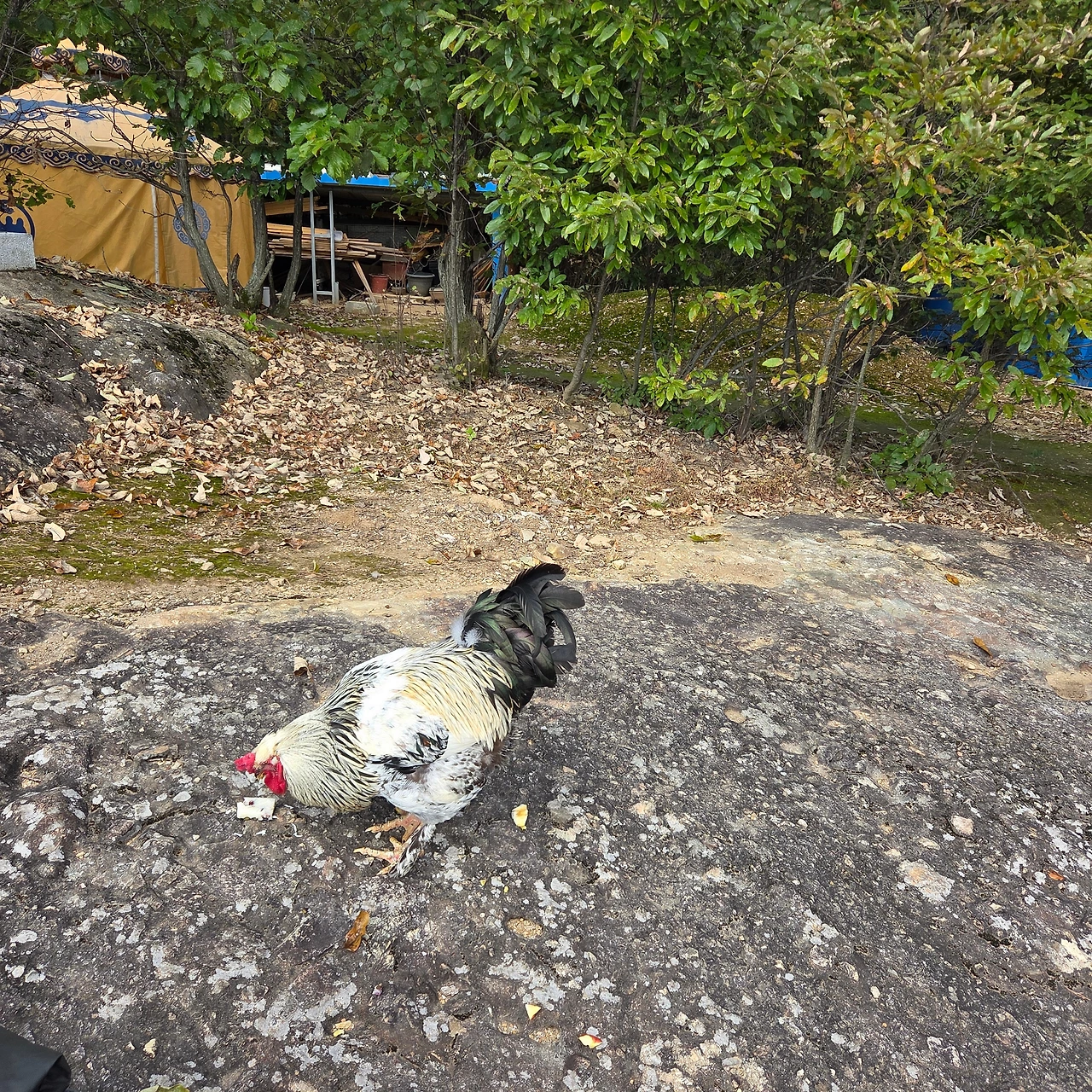 이제 요사채를 앞에 두고 넓은 바위에 앉아 늦은 점심을 해결하는데, 이곳에서 키우고 있는 닭이 나타나 우리의 호기심을 유발했다. 마지막에는 그 닭이 J가 주는 무엇인가에 호기심을 갖고 이끌려 그것을 낚아채면서 할퀴어 아쉬움을 자아냈다.