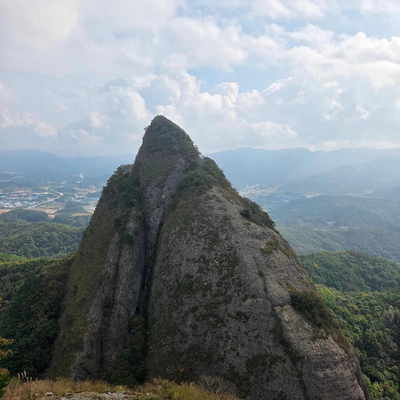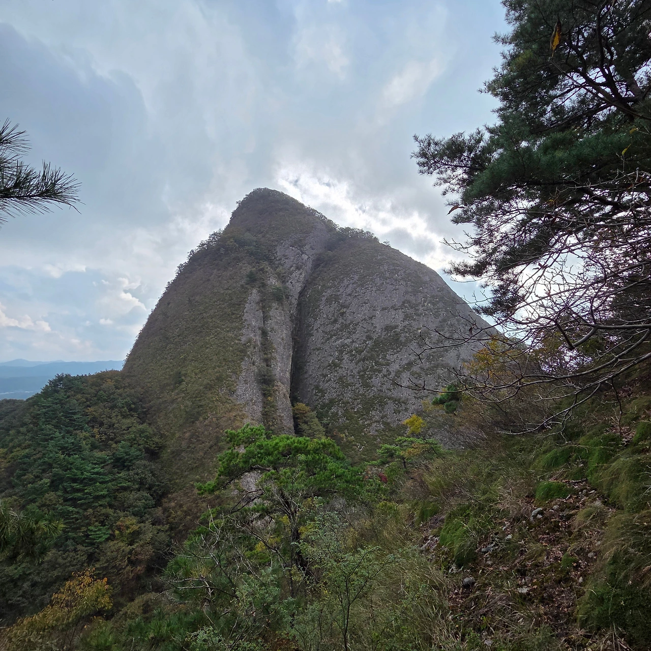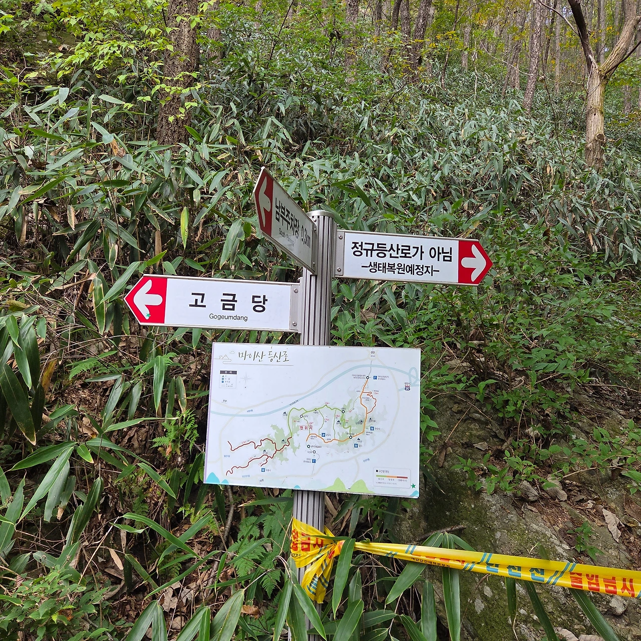 이제 산을 돌아 비룡대로 이동하였다. 산을 돌아 비룡대를 찾아갔는데 등산로가 이상했다. 바로 고금당에서 비룡대로 가는 것이 나았는데 산을 한 바퀴 돌아 비룡대로 돌아온 것이다. 아쉽습니다. 그리고 비룡대로 올라서는데 능선에서 처음으로 만난 사람이 반가웠고, 산을 즐기면서 관광 모드에서 등산 모드로 바뀌어 등산을 즐겼다. 비룡대 정자에 올라 암마이봉을 바라보면서 일정을 공유하고 봉두봉을 갔다 오는 것은 제외하기로 했다.