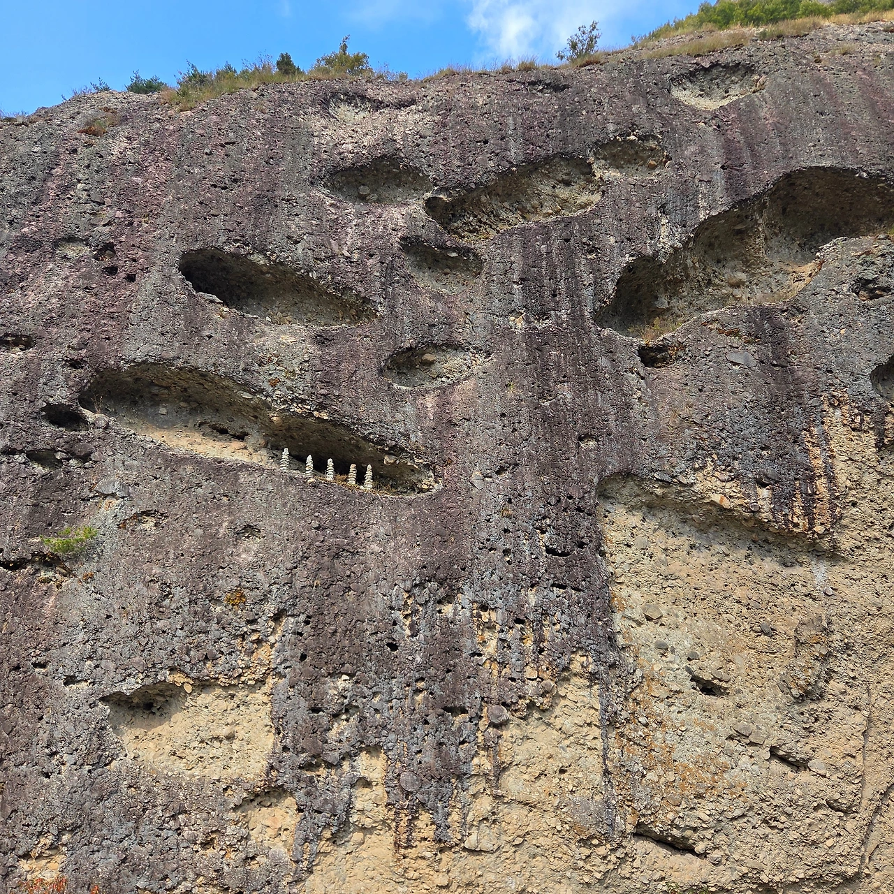 암마이봉을 내려와서 분주령에서 은수사로 향하였다. 암마이봉을 내려가면서 마이봉의 암석에 대해 토론을 하였다. 콘크리트를 만들어 놓은 듯한 암석의 특징을 보면서 신기해하고, 암마이봉이 어떻게 생겼을까 하고 서로 이야기했다. 퇴적암인 변성암이라고 되어 있는데, 그 퇴적암이 어떻게 우뚝 솟은 것일까 궁금했다. 인터넷의 도움을 받으니, "마이산은 중생대 후기 약 1억 년 전까지 호수였으나 대홍수 시 모래, 자갈 등이 물의 압력에 의하여 이루어진 수성암으로, 약 7천만 년 전 지각 변동으로 융기되어 지금의 마이산이 이루어졌으며 지금도 민물고기 화석이 간혹 발견된다"고 설명되어 있다. 탑사 주변에서 어린 친구가 이렇게 생긴 산을 보고 누가 만들었다고 했다는데, 그럴 만하다고 본다.