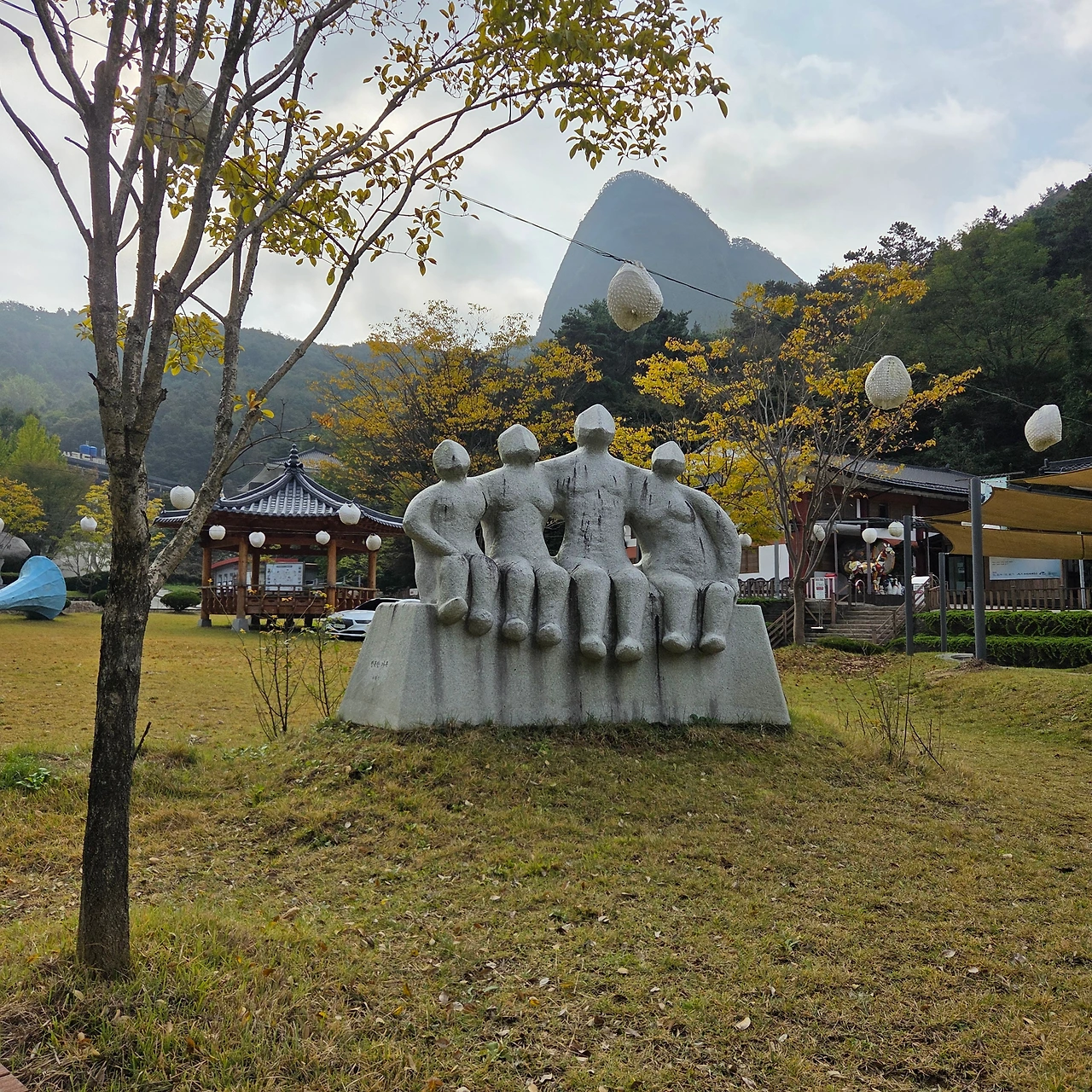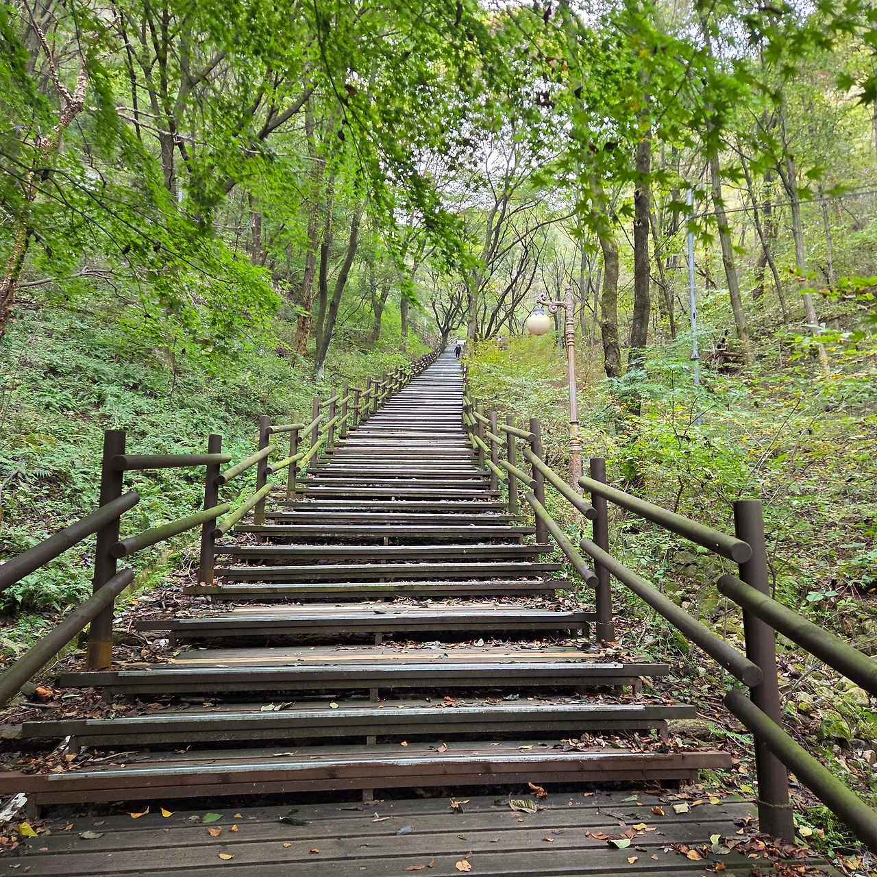 배낭을 챙기고 천천히 올라갑니다. 처음에는 도로를 따라 올라간다. 음식점 거리를 지나고 축제 거리를 지나 박물관이 있는 곳을 통과한다. 자수박물관, 닥종이 박물관, 가위박물관 등이 있다. 박물관 관람은 뒤로 미루고, 박물관 앞 정원을 구경하며 가위박물관 옆에서 계단으로 들어선다. 친구들에게 마이 열차도 있다고 했지만, 그것을 타지 않고 걷겠다고 하니 친구들도 납득했다. 사실 마이 열차를 타고 오르는 길이 얼마 되지 않는데 3천 원은 부담스럽다. 다리가 튼튼한 것에 감사했다.