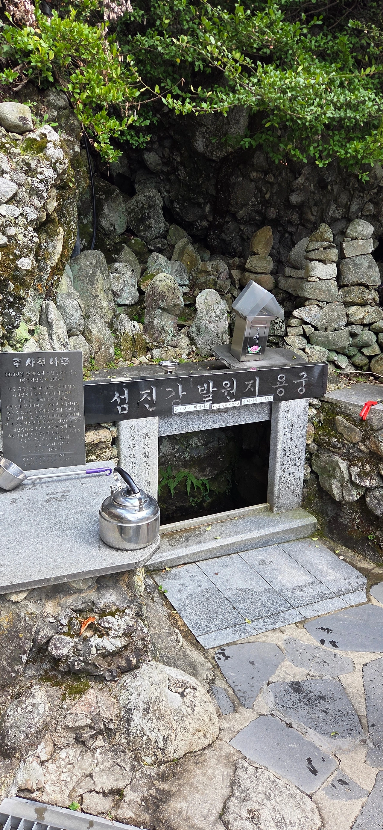 그곳에 섬진강의 발원지라는 용샘이 있지만, 실제적인 발원지는 같은 진안이지만 선각산 오계치와 팔공산 서구리재(896m) 사이 계곡에 있는 데미샘이다. 백운면 신암리 원신암 마을을 지나 북쪽으로 오계치 고개를 향하여 오르다 오른쪽 계곡으로 들어서면 데미샘이 나오고, 그 위로 봉우리 능선에 천상데미가 있다. 그래도 여기도 발원지라고 하니 믿고 사진을 남겼다.