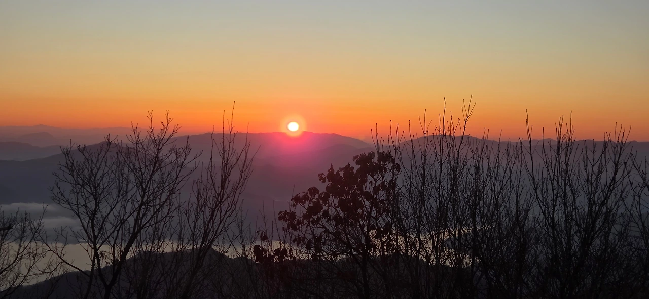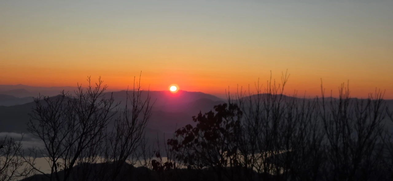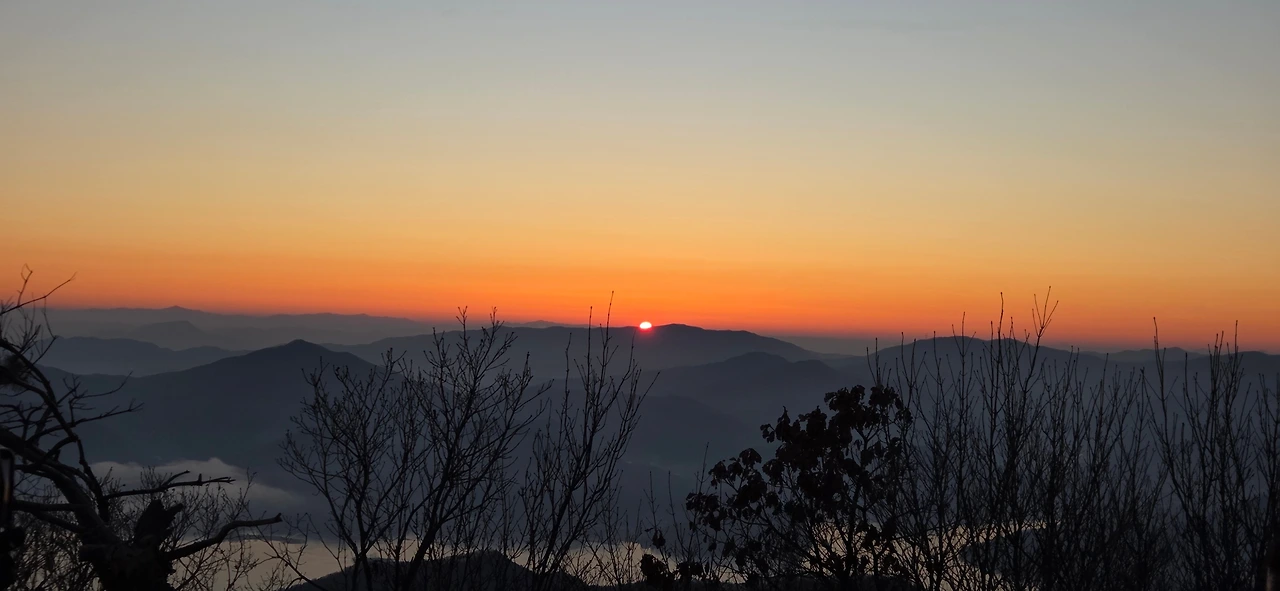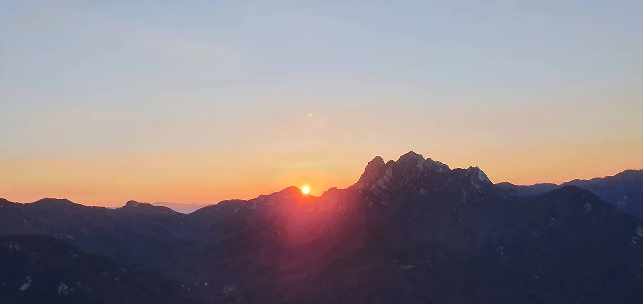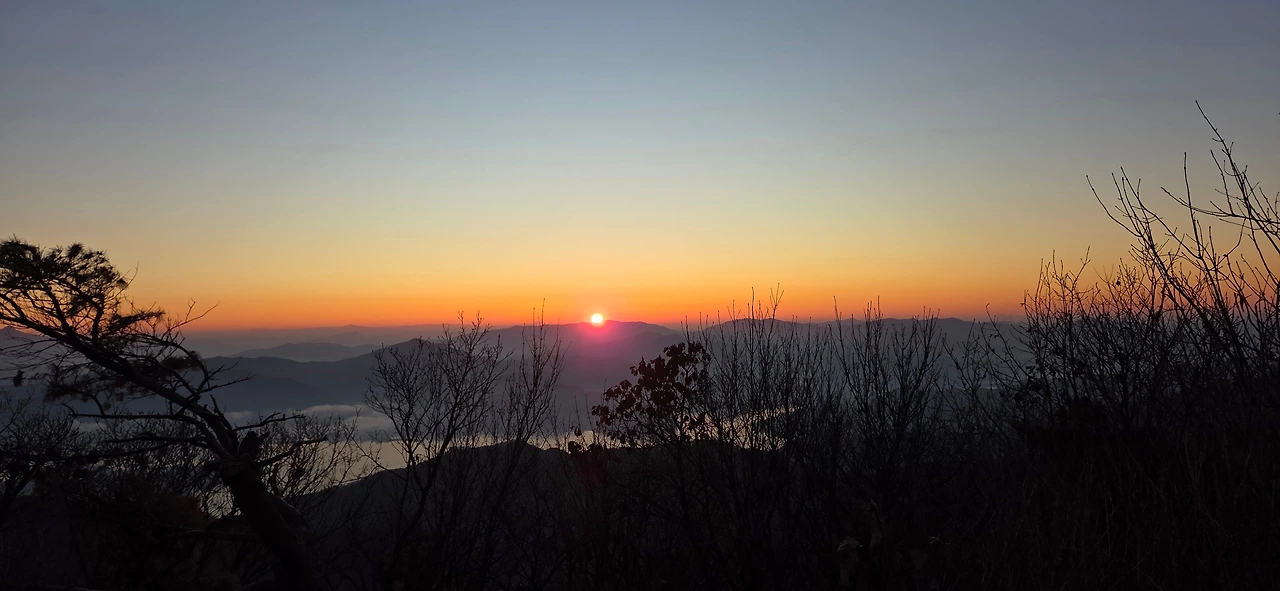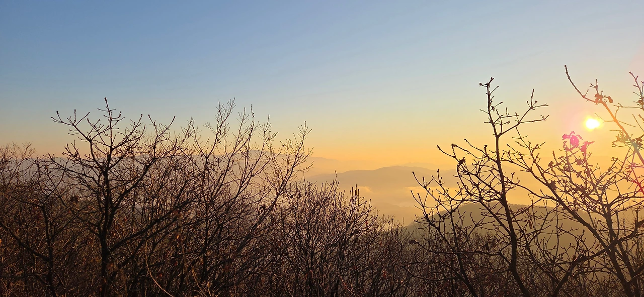 우리는 그동안 여러 번 일출 산행을 함께해 왔다. 노고산에서 북한산 인수봉과 영봉 사이로 솟아오르는 해를 보기도 했고, 검단산 정상에서 경기도 광주 양자산 줄기를 타고 오르는 일출을 보기도 했다. 2024년 땅끝마을 망섬 사이의 일출, 지리산 노고단과 천왕봉에서의 일출 등 추억이 선명하다. 이번에는 1월 1일의 인파를 피해 조금 한적해진 검단산을 목적지로 정했다.