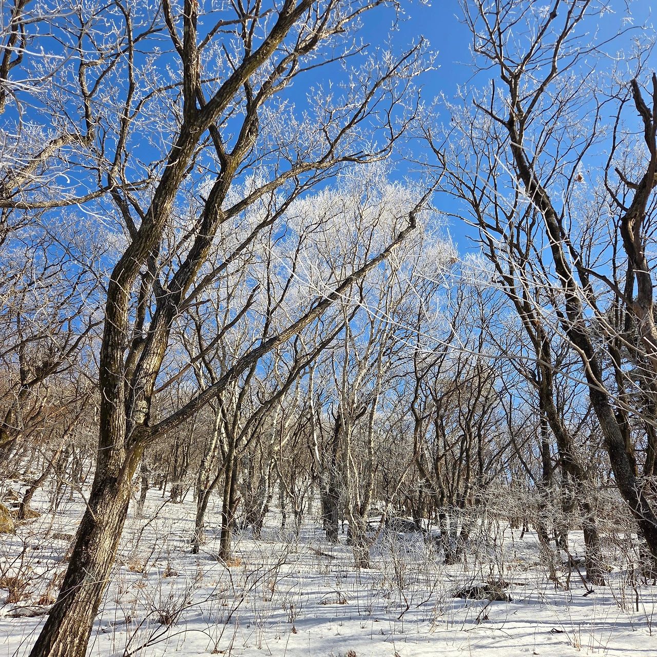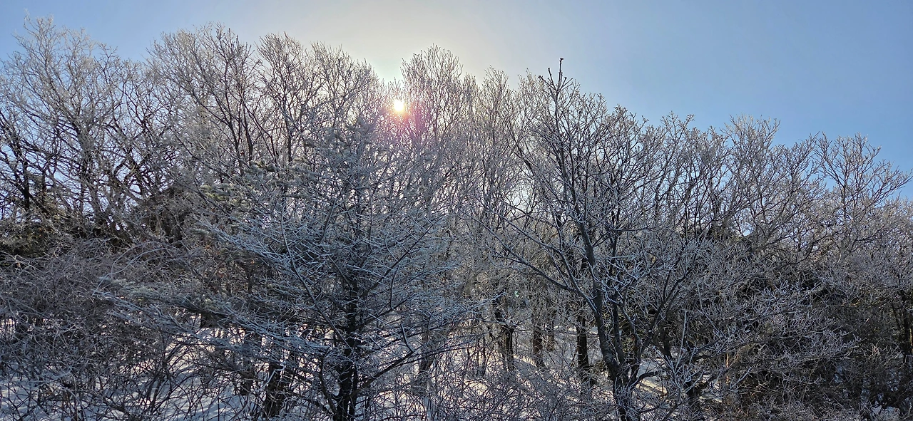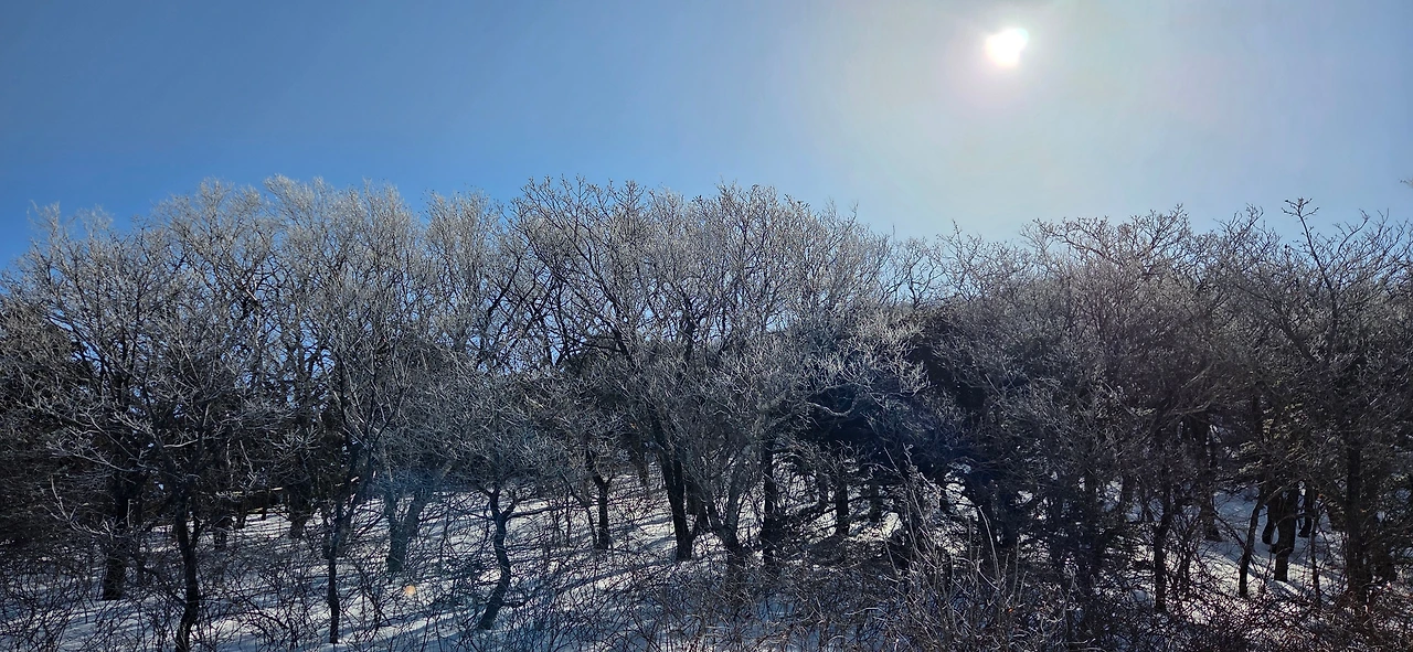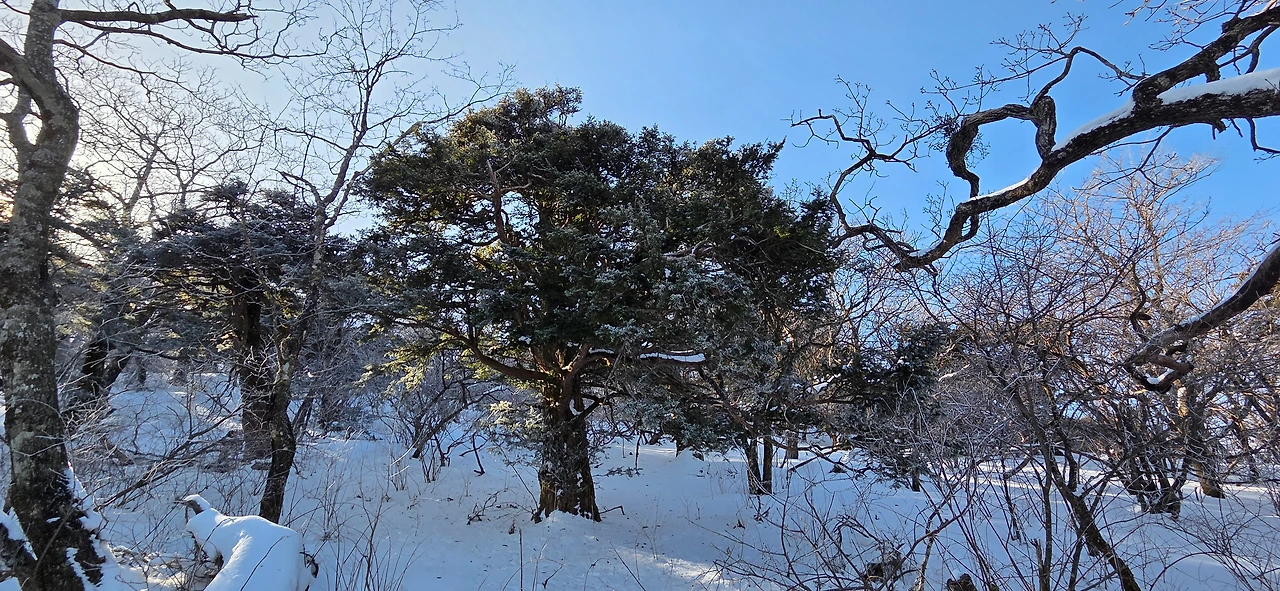 해발 1,200m를 넘어서자 기적처럼 상고대가 나타났다. 이른 시간 덕분에 아직 햇살에 녹지 않은 자작나무의 상고대가 보석처럼 반짝였다. 주목 군락지에 이르러 전망대에 서니 멀리 소백산 정상과 구름 아래 월악산, 금수산의 능선이 파노라마처럼 펼쳐졌다. 쓰러졌다가 다시 세워졌다는 주목 고사목은 그 자태만으로도 산객들에게 훌륭한 포토존이 되어주었다.