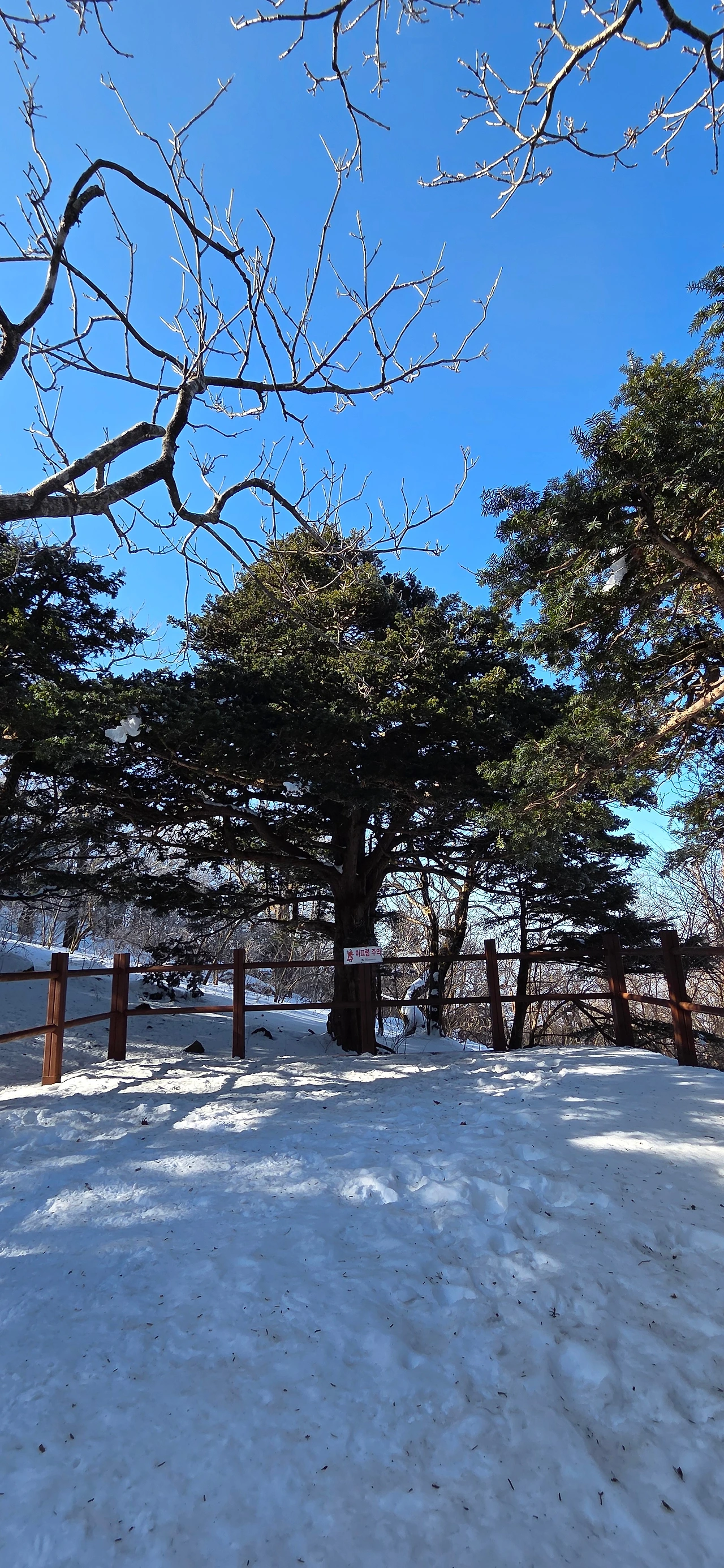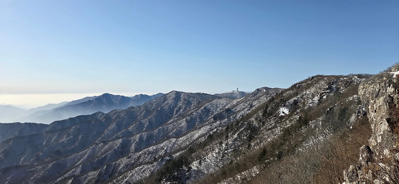천동 쉼터에 도착했으나 한파로 인해 화장실이 동파되어 폐쇄되어 있었다. 산을 찾는 이들, 특히 여성 등산객들에게는 큰 불편함이리라. 겨울 산의 냉혹함은 이런 곳에서도 드러난다. 고도가 높아질수록 산객들은 땀에 젖은 패딩을 벗어 배낭에 넣고 가벼운 차림으로 발걸음을 옮긴다.