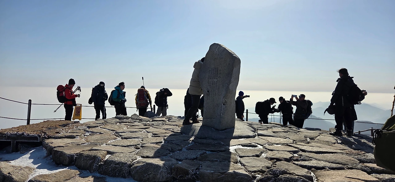 하산길은 올라올 때보다 훨씬 북적였다. 마치 북한산을 연상케 할 만큼 많은 이들이 소백산을 찾고 있었다. 불과 2시간 사이, 1,300m 아래의 상고대는 마법처럼 사라져 있었다. 쉼터마다 인파로 가득해 우리는 걸음을 재촉했다.