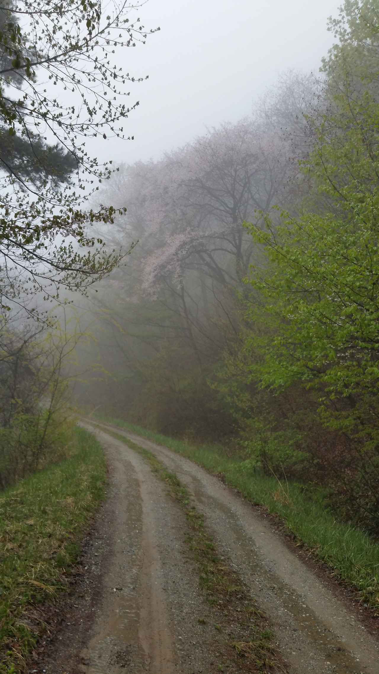 옛길이지만 임도도 정비되어 자동차도 다닐 수 있다. 아침 비와 4월의 초록이 어울려 아침의 산은 시원한 느낌이며 신선의 세계로 들어간다고 보아야 할 것이다.
