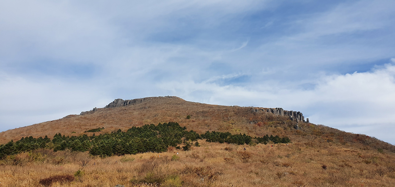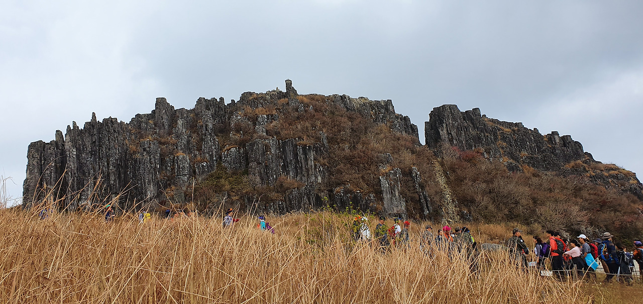 왼쪽이 서석대 오른쪽 입석대다. 이곳에서 다시 한번 인증샷을 남긴다. 무등산 정상으로 가는 길목에 위치하여 정상부의 주상절리들을 한눈에 바라볼 수 있는 유일한 장소인 곳이다. 거의 평탄하면서 억새밭이 펼쳐져 있다.