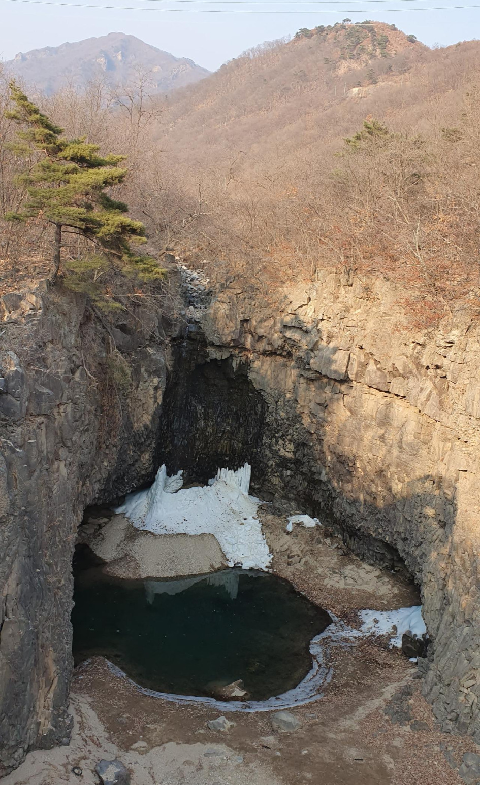 재인 폭포를 갔다. 재인 폭포를 간다고 하니 친구가 이렇게 말을 하였다. 재인 폭포는 물이 많을 때 가면 제대로 볼 수 없다고 하였다. 그 의미를 거기에 가서 알았다. 기본적으로 재인 폭포는 물이 많으면 접근하기 어렵게 되어 있는 구조로 되어 있다. 하지만, 현대의 모든 사람은 자연을 자연처럼 두지 않는다. 재인 폭포를 감상할 수 있도록 데크를 만들어 놓았다. 데크에서 재인 폭포를 내려갈 수 있도록 길도 만들어 놓았다. 하지만, 인간이 그렇게 만들어 놓고 또 이것의 사용제한을 걸어 놓는다. 한탄강댐을 만들면서 수몰 예상 지역 사람들을 이주시켜 놓고 재인 폭포 가는 길은 만들어 놓았다. 재인 폭포는 겨울 가뭄의 영향으로 수량이 거의 없이 졸졸 흐른다.