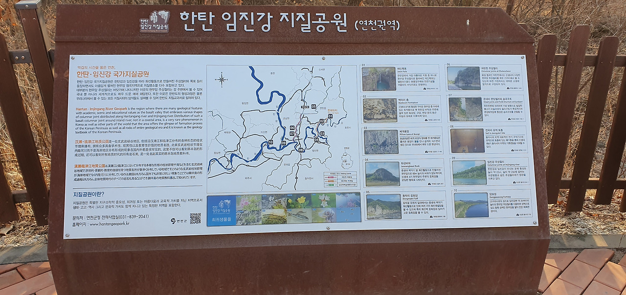 연천은 잔디가 유명하다. 3년 전 연천을 걸어서 탐방할 때 잔디를 많이 보았다. 그것이 왜 그런지 문화해설사에게 물어보았다. 문화해설사는 이렇게 답변을 하였다. 연천의 땅을 갖고 설명을 하였다. 아울러, 연천의 인구변화가 이를 설명할 수 있다고 하였다. 연천은 기본적으로 주상절리가 유명한 이유가 있다고 하였다. 연천은 강원도의 평강지역에서 화산이 폭발하여 연천, 파주까지 영향을 미쳤고 그래서 연천 대부분 돌은 현무암으로 이루어져 있다고 한다. 평강의 오리산에서 흘러나온 용암이 철원의 낮은 지대를 메우고 옛 한탄강을 따라 포천-연천을 지나 파주까지 흘러갔으며, 고문리-통현리-전곡리-온대리 일대에 약 30M 두께로 덮여 굳어졌다고 하였다. 이 부분이 침식작용으로 주상절리가 생겼으며. 지금도 차탄천의 주상절리는 유명하다고 한다. 제주에 가서 주상절리를 본다고 하지만 이곳의 주상절리가 더 멋있다고 느껴질 때가 많다고 한다.