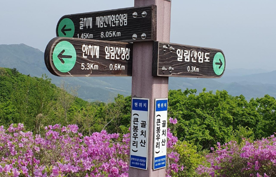 사자산에서 일임산으로 내려서는 등산로는 가파르다. 전형적인 화산지형이다. 일임산은 보여주지도 않는다. 능선을 내려선다. 재의 이름이 재미있다. 골치다. 골치를 올라서면 골치산이다. 골치산에서 일임산을 바라보니 이것이야 말로 장관이다. 산이 붉다. 산 봉우리가 철쭉으로 둘러싸여 있다. 산객들이 그곳에서 산신제를 한다고 한다. 내려서는 안부의 이름도 골치다. 골치가 양쪽에 있는 산은 골치산이다.