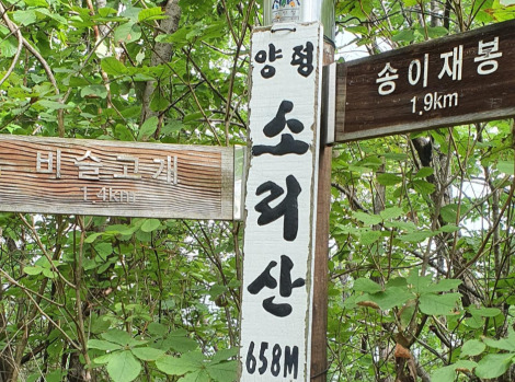 송이재봉을 가기전에 친구는 소리산이라고 왜 그렇게 했는지 궁금하다. 하지만 어디에도 그내용이 없다. 네이버에 찾아보니 소리산이 2곳에 있다. 이곳보다 북쪽에 있는 소리산이 높이는 낮지만 더유명하다. 이곳은 그저 송이재봉을 가는 길에 위치한 산일 뿐이다.
