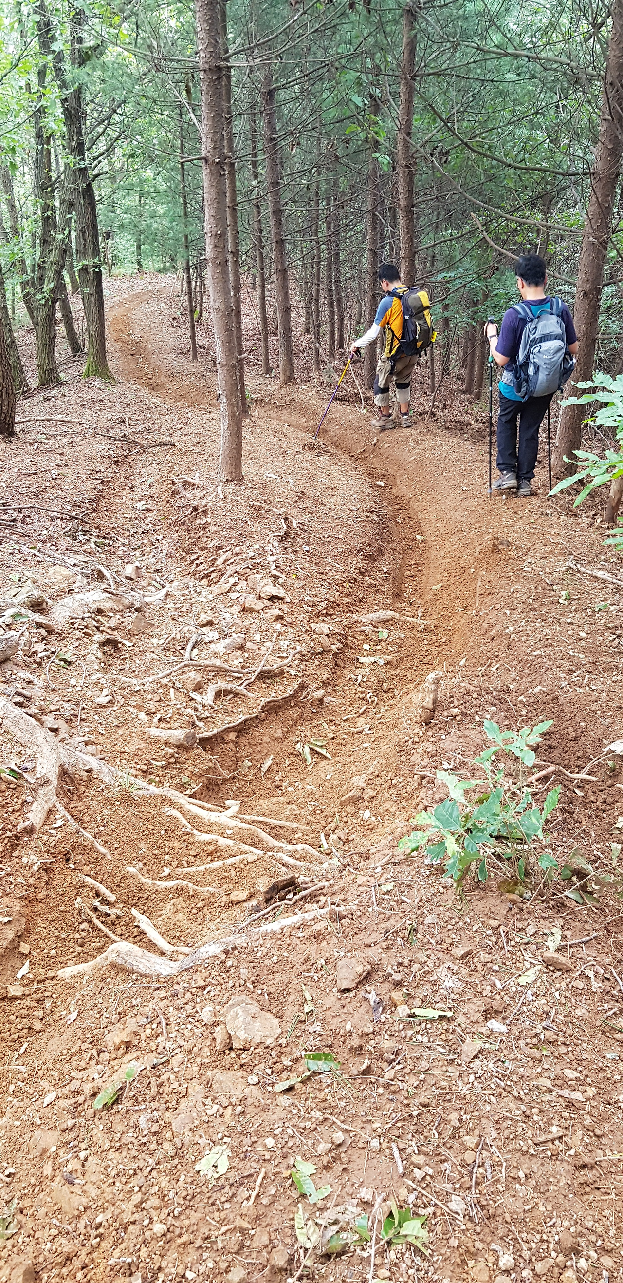 이곳에서 산을 오르면서 그래도 자연을 즐기면서 보호할 필요가 있다는 것을 알았다. 이곳에서 산악오토바이를 즐기는 사람들이 등산로를 비롯하여 낮은 구릉을 황폐화 시키고 있었다. 처음에는 등산을 하는 사람들의 등산로로 인하여 물길이 생겼나 했는데 아니다. 산악오토바이가 오르내리면서 깊게 골을 만들어 놓았다. 어디로 발을 디뎌야 할지를 모르게 황폐화 시킨것이다. 이것을 어디에 청원을 하면 해소될까 고민을 하면서 산림청을 목표로하기로 하였다.