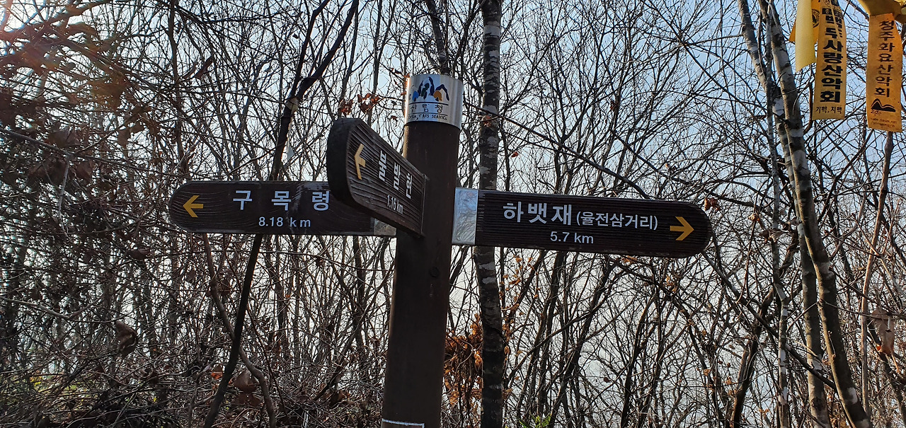 보래봉에 도착하여 한숨을 쉬니 이정표가 보인다.