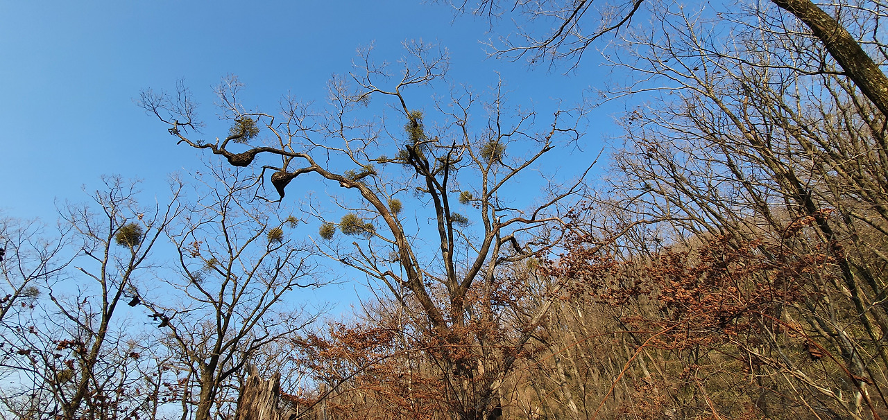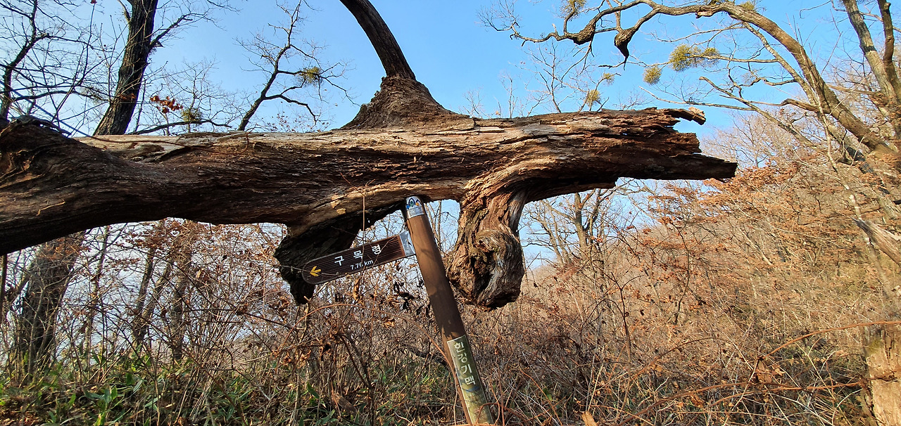 청량봉에서 장곡현으로 가는데 나무가 쓰러지면서 이정표 위에 나무가 쓰러져 있어 이정표가 쓰러진 나무를 받치고 있다. 겨우살이가 해발 1000m 근처라서 참나무마다 달려있다. 저 겨우살이는 겨울 내내 푸르름을 자랑하겠지만 참나무에는 나쁜 영향을 줄 것이다. 그렇지만 겨우살이는 반기생식물로 양심 있는 기생식물이라고 한다. 모든 걸 기주목인 참나무에 의존하는 게 아니라 광합성이 가능한 푸른 잎으로 양분을 자체 생산하기도 한다고 한다. 산행을 하면서 겨우살이를 보고 채취하고자 하는 사람이 있는데 나는 그것을 전적으로 말린다. 겨우살이를 채취하는 사람들에게 구매하면 10,000원이면 충분히 먹을 수 있는데 그것을 채취하다가 다치면 병원비가 더 들어간다고 제지를 한다.