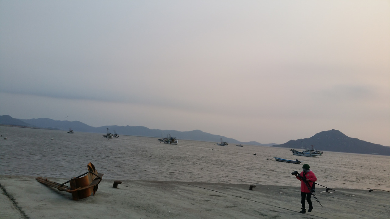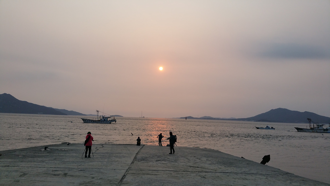 이제 창 후 여객터미널에 도착하였다. 여객터미널 주차장에 사람들이 많다. 이들은 일몰을 보기 위해 온 것이다. 우리도 일몰을 보기 위하여 기다려 보기로 하였다. 석모도와 일몰 되는 태양이 어울려져 있다. 빛을 잃어가고 있는 태양이 안쓰럽다고 해야 하는 것인지 그것이 아름답다고 해야 할지 어렵다.