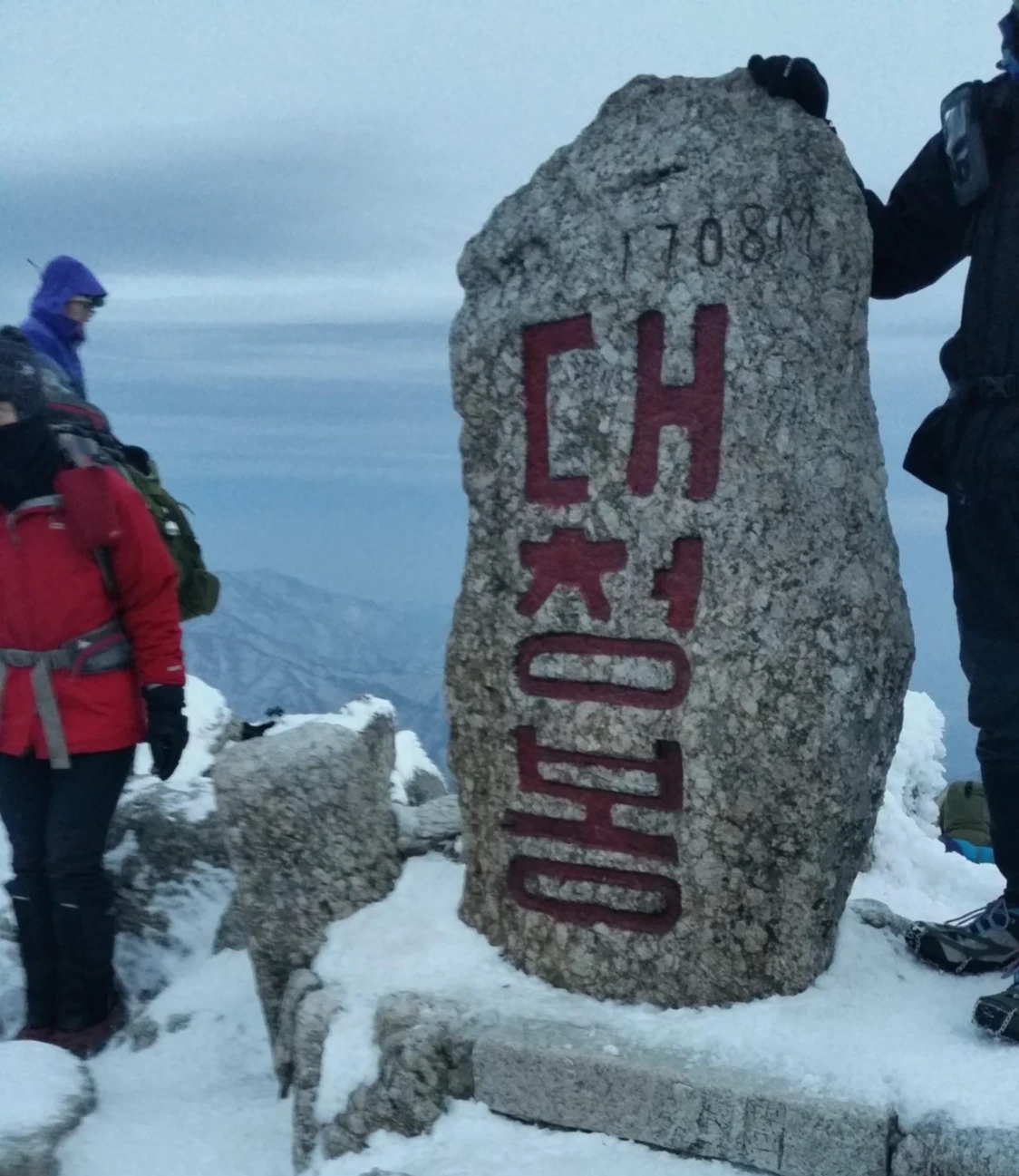 아침 안개와 구름 속에 붉은 느낌만 보고 말았다. 누 구간 이렇게 말을 한다. 대청봉 일출을 보기 위하여는 덕을 쌓아야 한다고 나는 덕을 쌓지 못했나 보다. 일출을 보지 못하고 붉은 느낌만 보았다. 멀리 바다에서 떠 오르는 태양은 보지 못하였다. 대청봉은 1년 1-2번은 올라가지만 겨울에 올라가니 모두들 바람에 자기 몸을 꽁꽁 싸매고 인증샷도 잠깐이다. 요즈음 얘기를 들어보니 저 정상석도 수난을 겪고 있다고 한다. 그것이 무엇을 잘못했는지 모르겠고 그렇게 한다는 것이 무슨 의미 일까? 추측하고 있는 것은 개인적인 욕심이라고 한다.