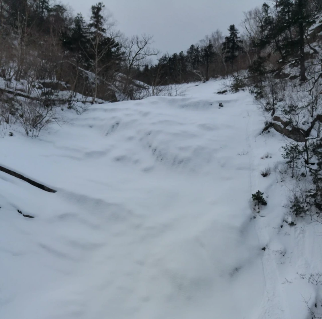 처음 접한 쌍용 폭포는 겨울에 완전히 얼어서 그냥 눈썰매장처럼 보일 뿐이다.