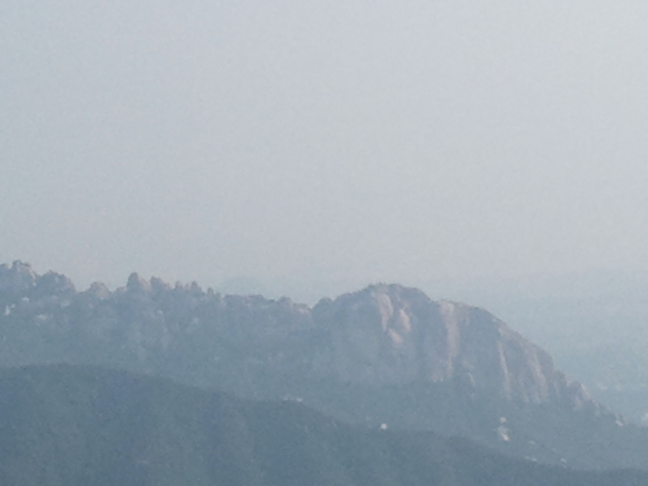 멀리 울산바위가 구름 속에서 보여주었다가 말았다. 그래도 울산바위가 살짝 구름에 흔적을 남길 때 담아본다. 봉우리가 아니지만 고개를 넘을 때마다 쉬면서 영양을 보충한다. 그래도 힘이 든다.