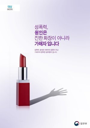 아래 이미지들은 올해 초 발표된 법무부의 '성폭력 근절 포스터 공모전' 대상 수상작인 유진우씨의 '원인은 가해자입니다' 시리즈입니다.