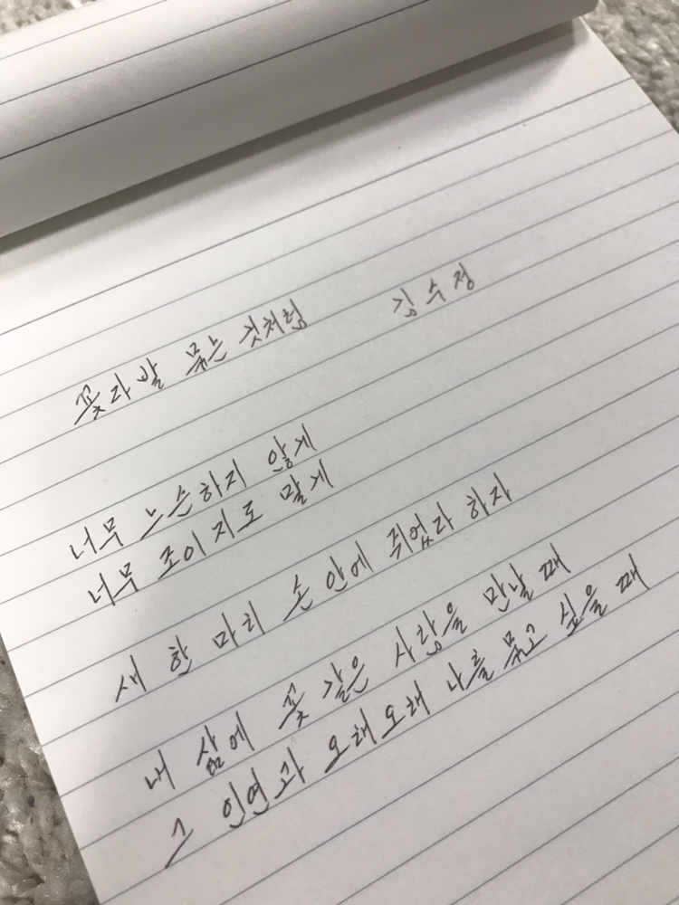 [1105] 005_꽃다발 묶는 것처럼 / 김수정너무 느슨하지 않게너무 조이지도 말게새 한 마리 손 안에 쥐었다 하자내 삶에 꽃 같은 사람을 만날 때그 인연과 오래오래 나를 묶고 싶을 때
