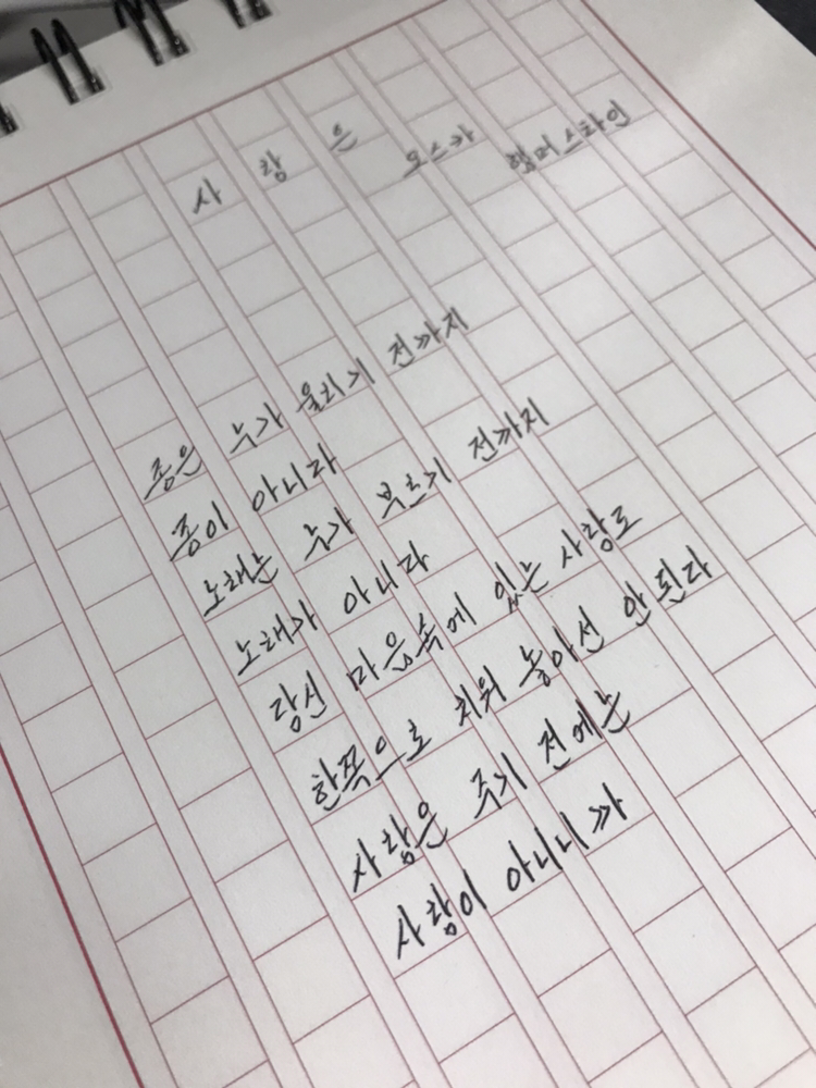 사랑은 오스카 햄머스타인종은 누가 그걸 울리기 전에는 종이 아니다.노래는 누가 그걸 부르기 전에는노래가 아니다.당신의 마음속에 있는 사랑도한쪽으로 치워 놓아선 안 된다.사랑은 주기 전에는사랑이 아니니까.