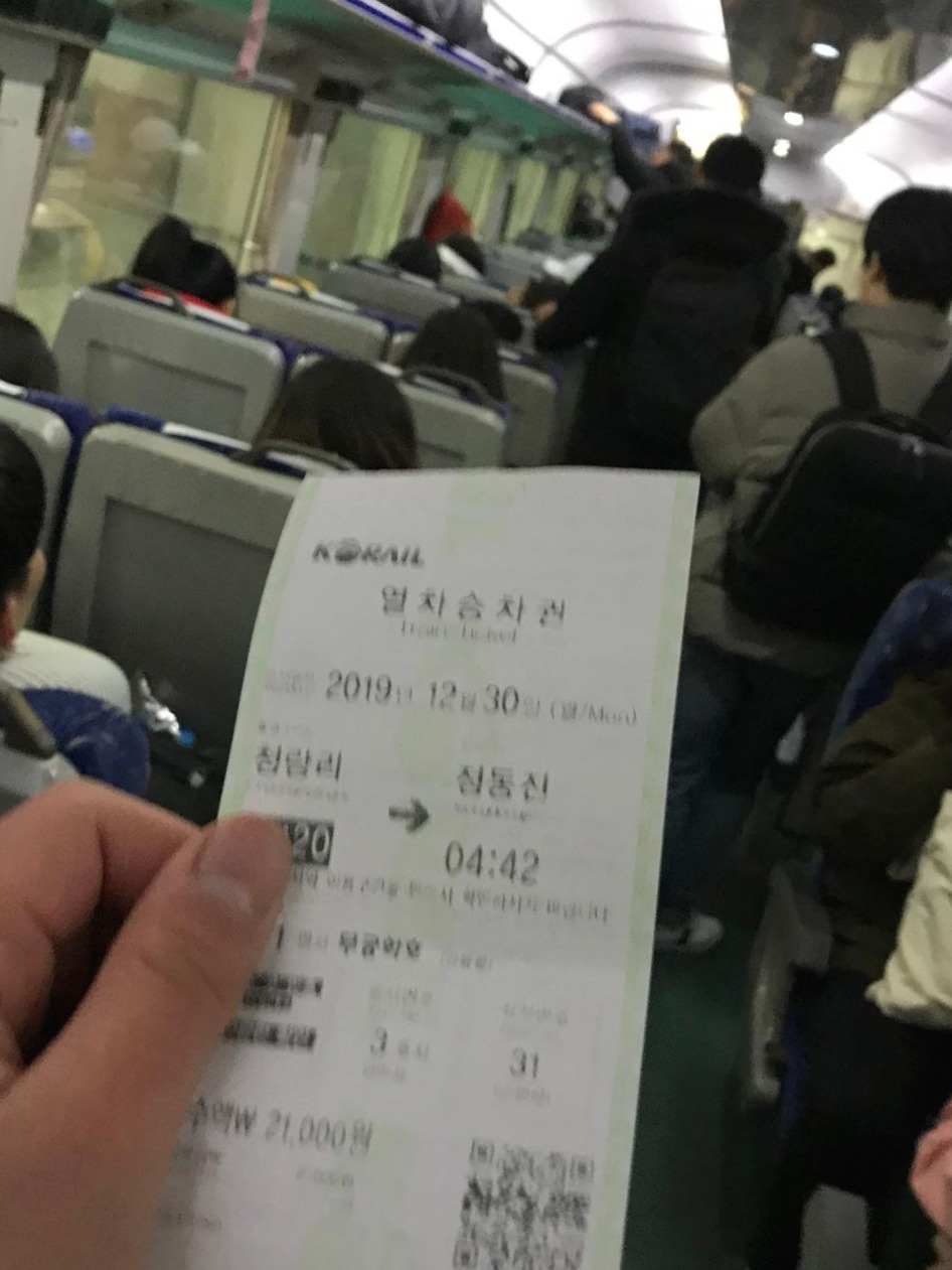 19년도 어김없이 연말이 다가왔다. 이번 여행은 2019년 마지막 해를 보기 위해서 12월 30일 23시 20분에 출발하는 정동진행 기차에서 시작한다.