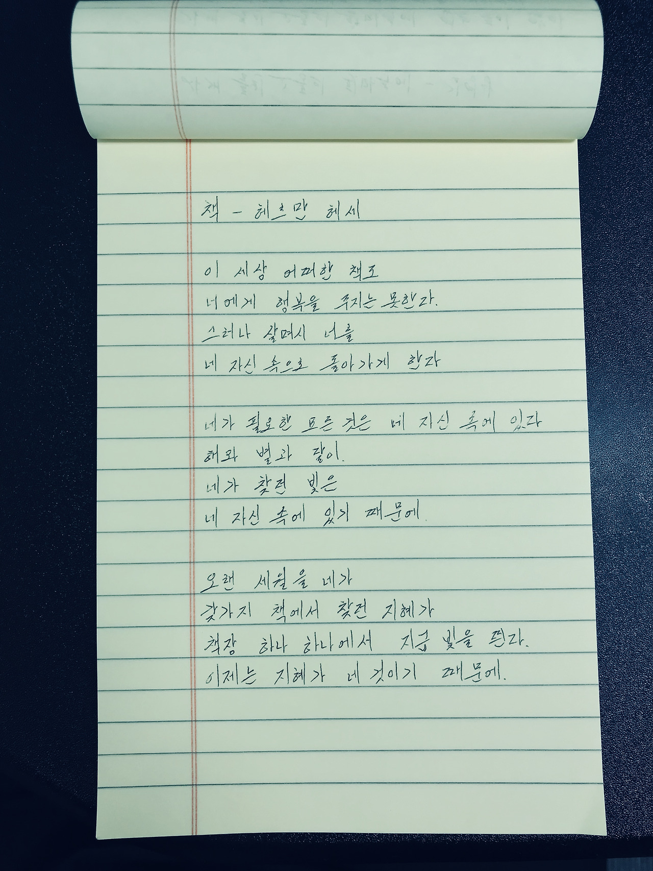 책 - 헤르만 헤세이 세상의 어떠한 책도너에게 행복을 주지는 못한다.그러나 살며시 너를네 자신 속으로 돌아가게 한다.네가 필요한 모든 것은 네 자신 속에 있다.해와 별과 달이.네가 찾던 빛은네 자신 속에 있기 때문에.오랜 세월을 네가 갖가지 책에서 찾던 지혜가책장 하나하나에서 지금 빛을 띤다.이제는 지혜가 네 것이기 때문에.#1일1시 #100lab