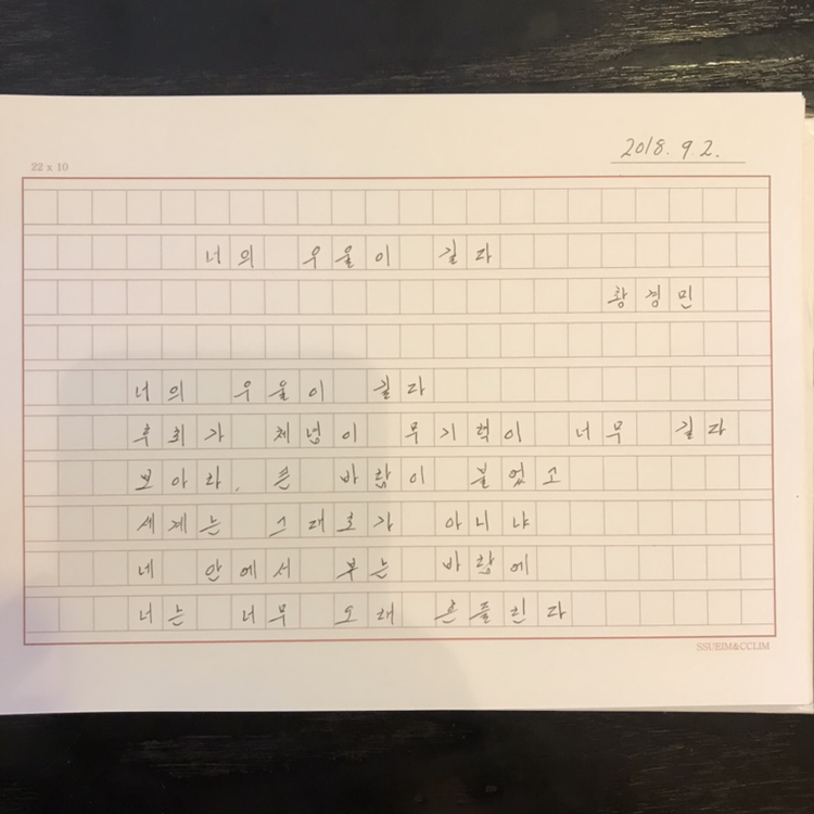너의 우울이 길다 황경민너의 우울이 길다후회가 체념이 무기력이 너무 길다보아라큰 바람이 불었고세계는 그대로가 아니냐네 안에서 부는 바람에너는 너무 오래 흔들린다#1일1시 #100lab