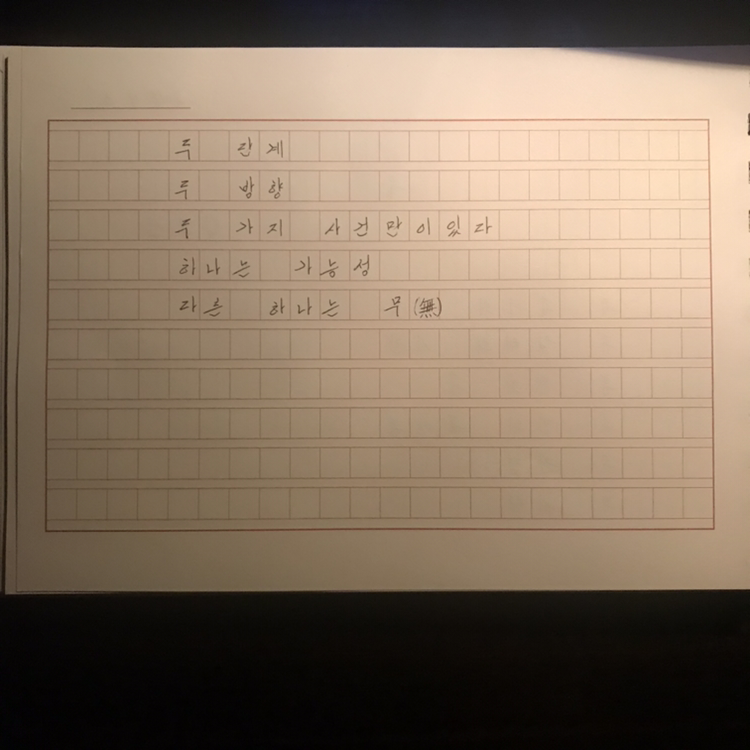 두 줄기의 햇빛두 갈래의 시간두 편의 꿈 두 번의 돌아봄두 감정두 사람두 단계두 방향 두 가지 사건만이있다하나는 가능성 다른 하나는 무(無)#1일1시 #100lab