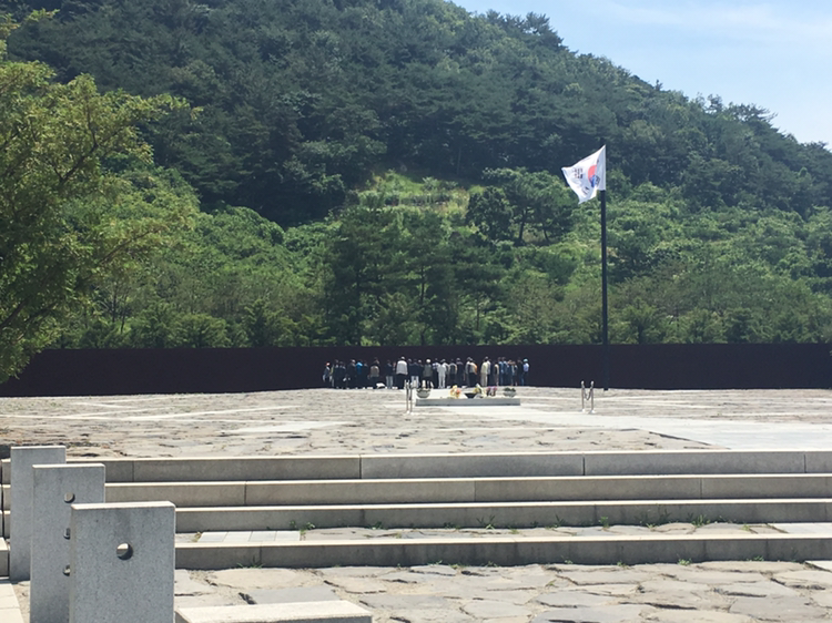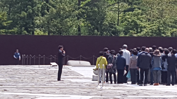 묘역에 다다르니 먼저 참배에 나선 분들이 있다. 대부분 연세 지긋하신 분들이다. 제주에서 오신 분들이라 한다. 제주 4.3 사태에 대해 노무현 대통령은 국가차원에서 행해진 폭력행위를 국가를 대신해 사과했다. 수십년 묵은 그 한과 응어리를 풀어준 고마움으로 제주도민들의 발걸음이 봉하마을엔 끊이지 않는다 한다.