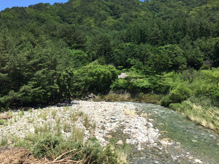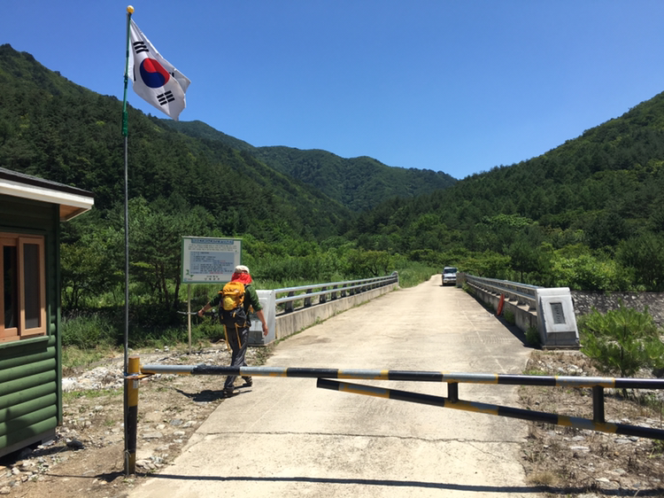 조경동과 세상을 잇는 다리 이름이다. 태극기가 나부끼고 차단막이 버티고 있다. 그래도 다리입구까지는 걸어가 보았다. 하지만 거기까지다. 더 이상 갈 엄두를 못내겠다. 조경동 아침가리 마을은 피안의 세계처럼 저 너머에 있다. 화전을 일구며 평안을 꿈꾸던 사람들의 모습이 눈에 어른거린다. 민가 하나가 외롭게 산기슭에 버티고 서있다.