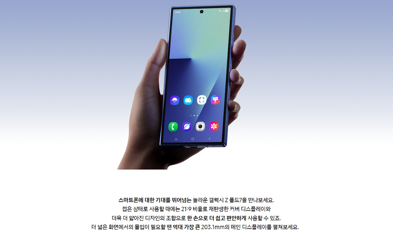 폴드 7은 압도적인 슬림함과 간편함으로 몰입감을 획기적으로 개선시킨 폴더블폰이다.
