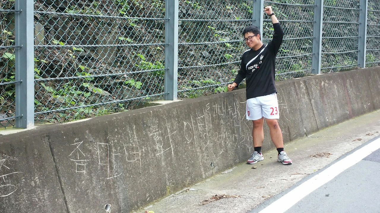 자전거로 인천에서 부산을 여행하다보면 뜻밖의 장소를 지나가게 된다. 창녕쯤 지났을 때 낙석 방지 콘크리트 벽면에 먼저 이 길을 떠나온 사람들의 응원메세지를 볼 수 있는 공간이다.