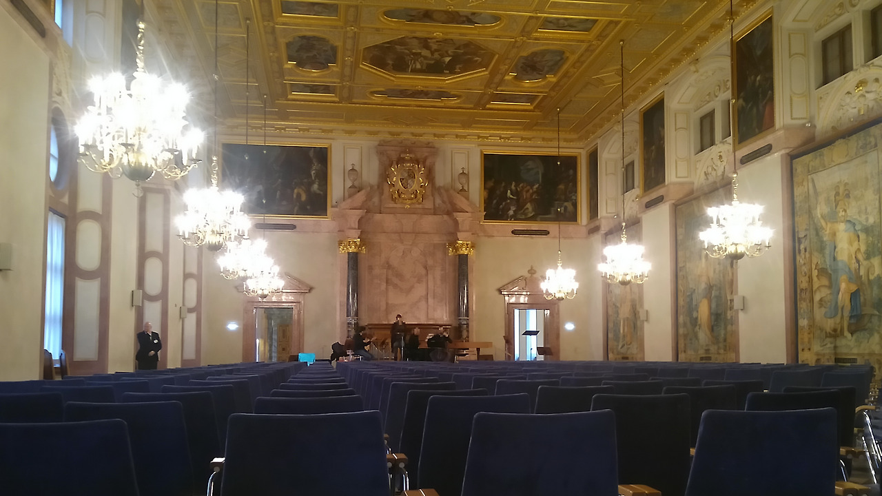 그나마 얌전했던 직물공예방을 나오자 다시금 번쩍이는 황금이 나를 맞이해 주었다. 눈이 아플 만큼 화려한 건물이 이제야 슬슬 익숙해졌다. 다양한 방을 지나다 연주회장으로 쓰였다는 넓은 공간을 발견했다.