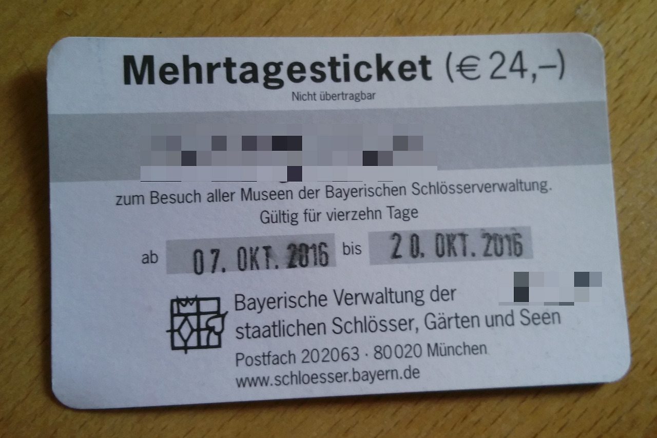한동안 독일의 바이에른주(州)를 돌아다닐 예정이라 관광 통합권을 구매했다. 이제 나는 이 빳빳한 종이티켓 하나면 15일 동안 바이에른의 성들과 박물관을 자유롭게 관람할 수 있었다.