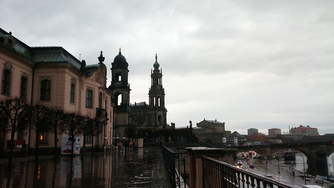 그래도 독일에 와서 레지덴츠궁들을 꽤 보았다고 생각했는데 드레스덴의 레지덴츠궁이 단연으로 고풍스러웠다. 건물차체의 분위기도 있었지만 도시의 분위기가 한몫을 했다. 건물들의 비에 젖은 외벽이 그을음과 맞물려 예스러움을 더했고 흐릿한 하늘과 얕게 깔린 안개가 마치 소설 속 배경 같았다. 당장이라도 파이프를 입에 문 남자가 추리를 시작할 거 같은 분위기였다.