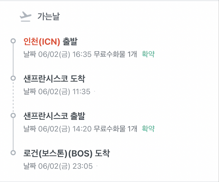 - 아... 저는 아는 형님네 집에서 지낼 거예요. 형이 보스턴에서 유학하는 학생인데 방학에 놀러 온 거예요. 그래서 호텔표는 없습니다. (형님과 상의한 결과 숙소표는 미국에 와서 일정을 조정하고 잡기로 했기 때문에 미리 사두지 않았습니다.)
