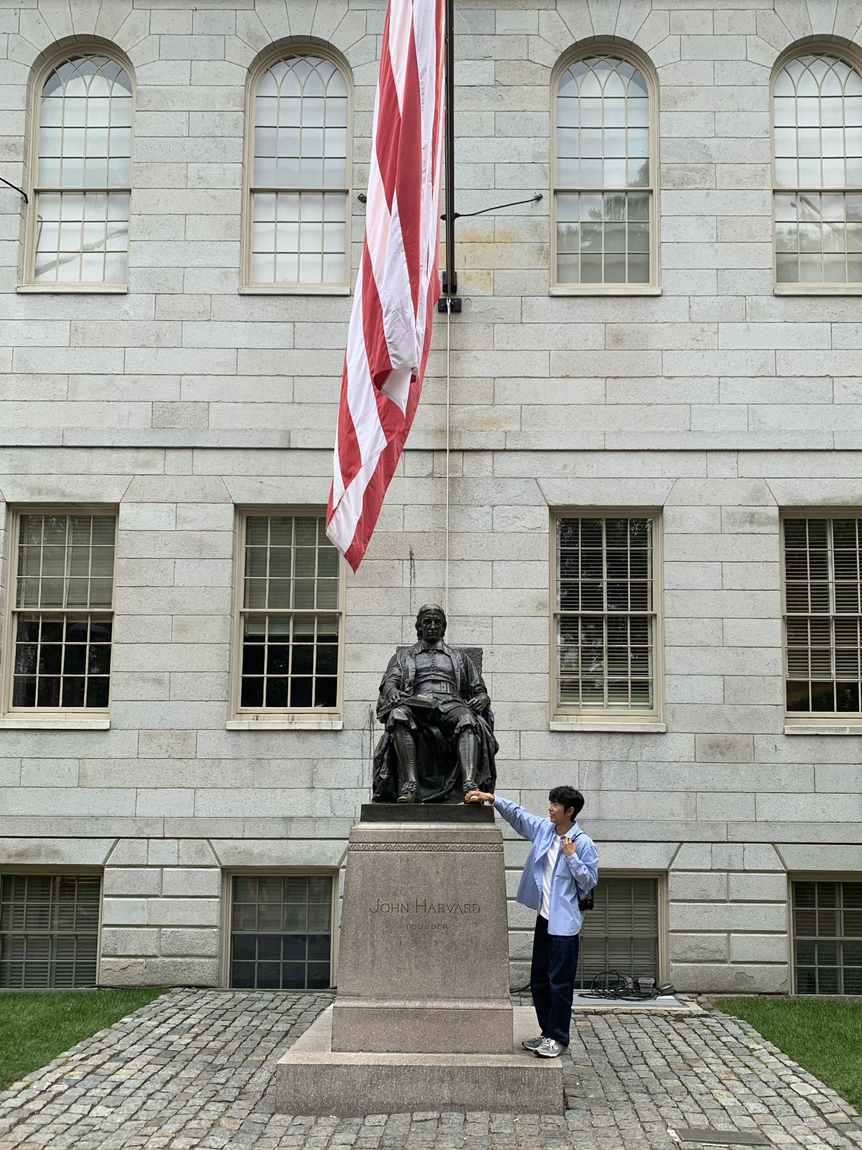 캠퍼스에 있는 존 하버드 동상 발 끝을 만지면 3대 안에 하버드를 간다고 하여 들어갈 때 한 번, 나올 때 한 번. 총 두 번을 만져주었습니다. 미래의 손자, 손녀들아 할아버지께 감사하거라.