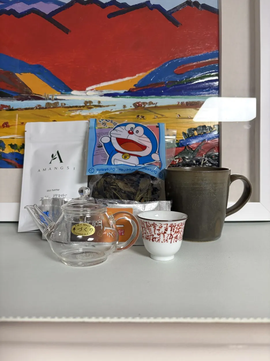 최근 프로젝트 투입으로 타 회사에서 일하고 있다. 새 환경에서는 언어의 속도와 눈빛의 간격, 앉아 있는 자세까지 조금 더 조심스럽다. 피곤이 쌓이던 탓에 동료들과 습관처럼 커피를 들이켰더니 금세 가슴이 벌렁거렸고, 집중은 오히려 흐트러졌다. 그래서 오늘, 작은 티포트와 새 찻잔을 가방에 넣어 가져왔다. 전열기기를 쓰는 건 과한 듯하여 정수기 온수로만 우렸다. 잎을 넣고, 물을 받고, 건드리지 않고 기다렸다. 그 몇 분 동안 화면의 반짝이는 알림창은 그대로였지만 내 마음은 정리됐다. 맛은 완벽하지 않았다. 그래도 충분했다. 김이 얇게 오르는 작은 잔, 손에 꼭 맞는 곡선, 첫 모금이 목을 넘어갈 때의 조용한 여유.