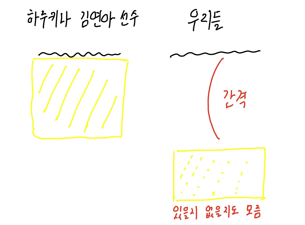 김연아 선수는 광대한 금광이 묻혀 있었지만, 이 금광보다 더 운이 좋았던 것은 삽자루를 주변에서 쥐어주었다는 사실이다. 부모님이 어릴 때 피겨스케이팅을 시켜봤고 훌륭한 코치가 금이 묻혀있다는 것을 알아봤다. 어라? 이 땅이 내 땅인가벼! 하고 팠는데 진짜로 재능이 들어있었다. 어마무시하게 운이 좋은 케이스다.