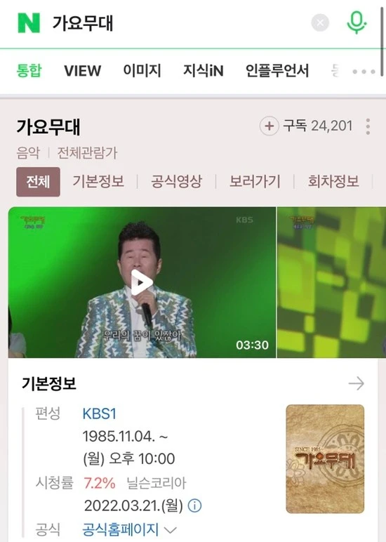 사례는 또 있다. 혹시 KBS에서 월요일 밤 10시마다 하는 <가요무대>라는 프로그램을 아시나? 들어는 봤는데 잘은 모르겠거나 어쩌다가 리모콘 돌리다 한 번 봤다는 사람들이 대다수 일 것이다. 놀랍게도 이번주 가요무대의 시청률은 7.2프로였다. 이 수치는 길 지나가는 사람들을 아무나 붙잡고 물어봤을 때 14명 중 1명 꼴로 이 프로그램을 매주 시청한다는 의미다.